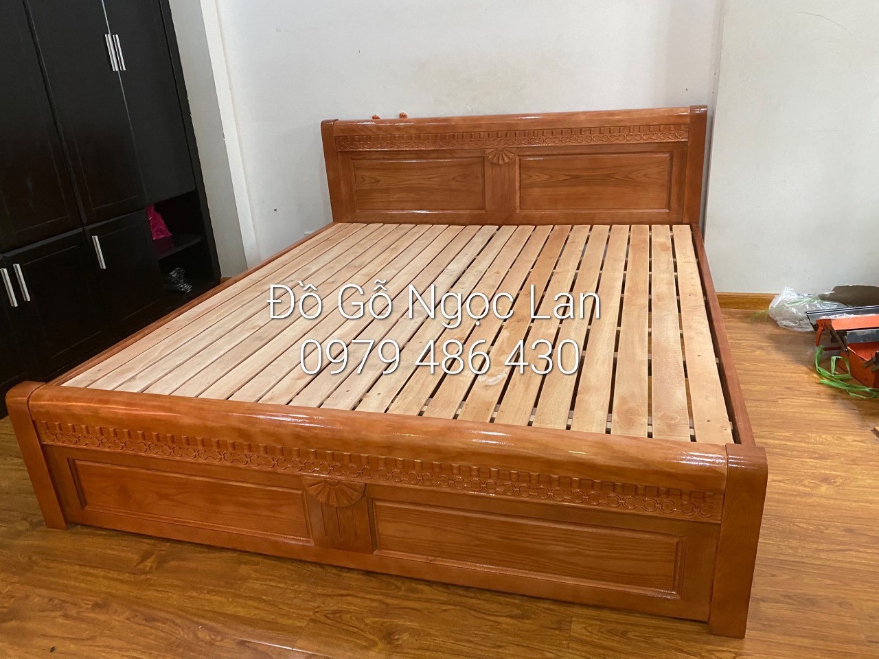 Giường gỗ sồi nga vạt lan màu cánh gián - mẫu quạt