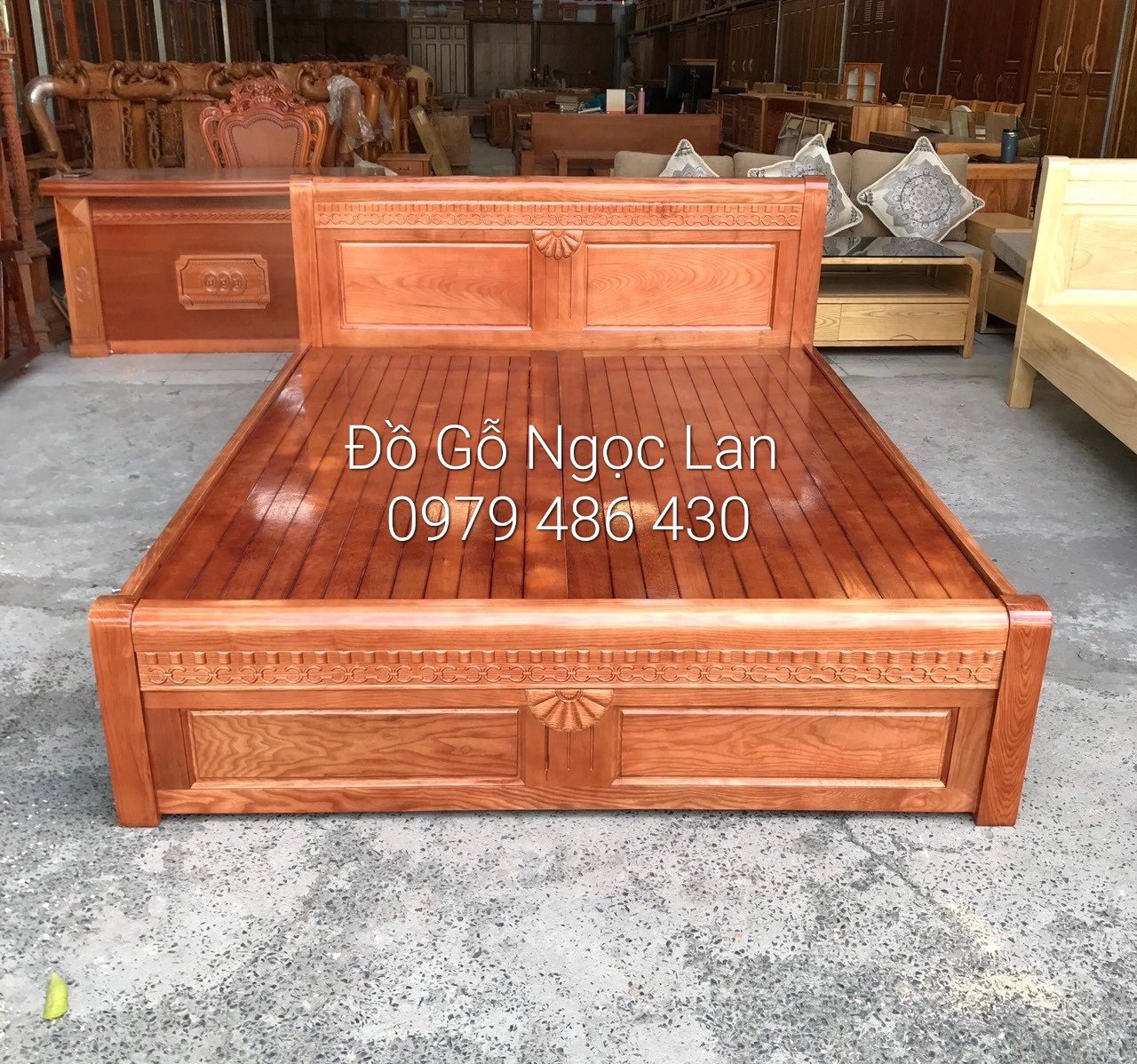 Giường gỗ sồi nga vạt phản mẫu quạt - màu cánh gián