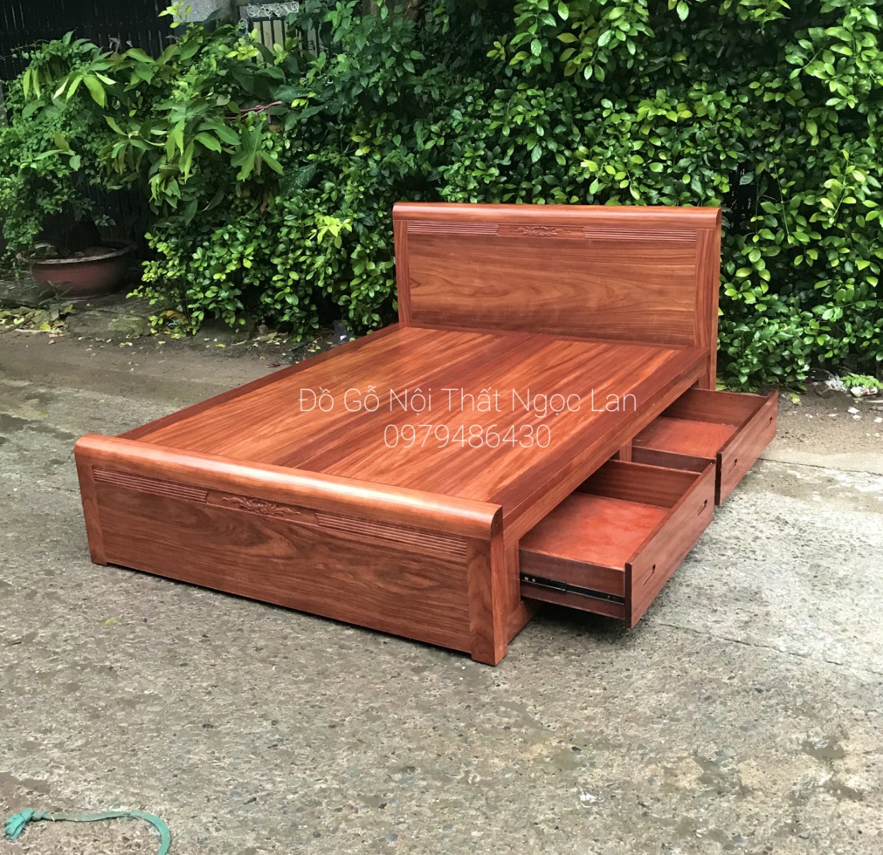 Kích thước giường 2 ngăn kéo gỗ cẩm