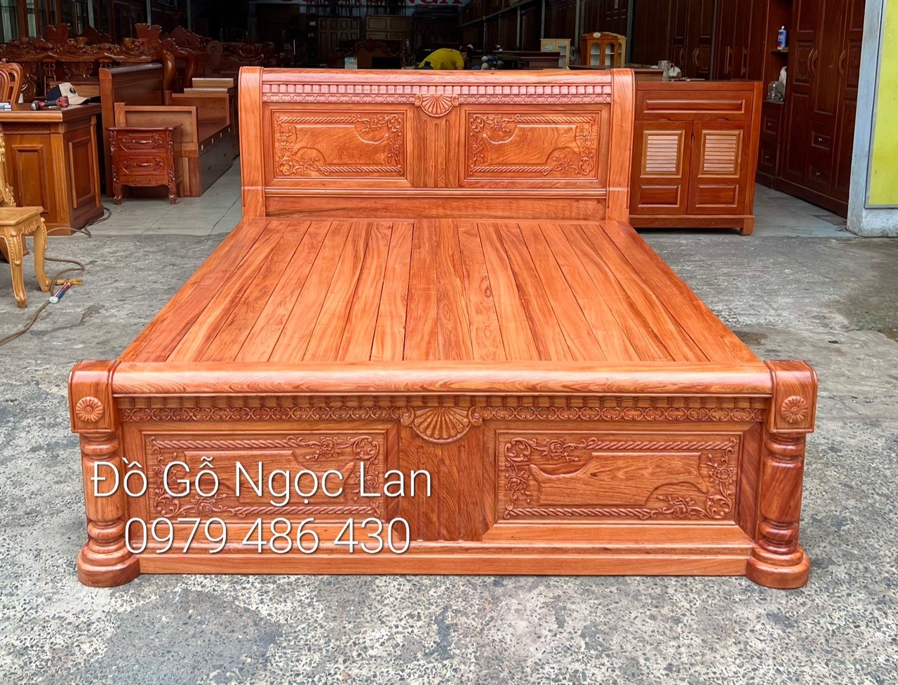 Giường ngủ gỗ hương đá vạt phản cao cấp mẫu quạt