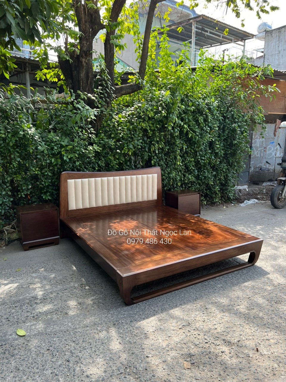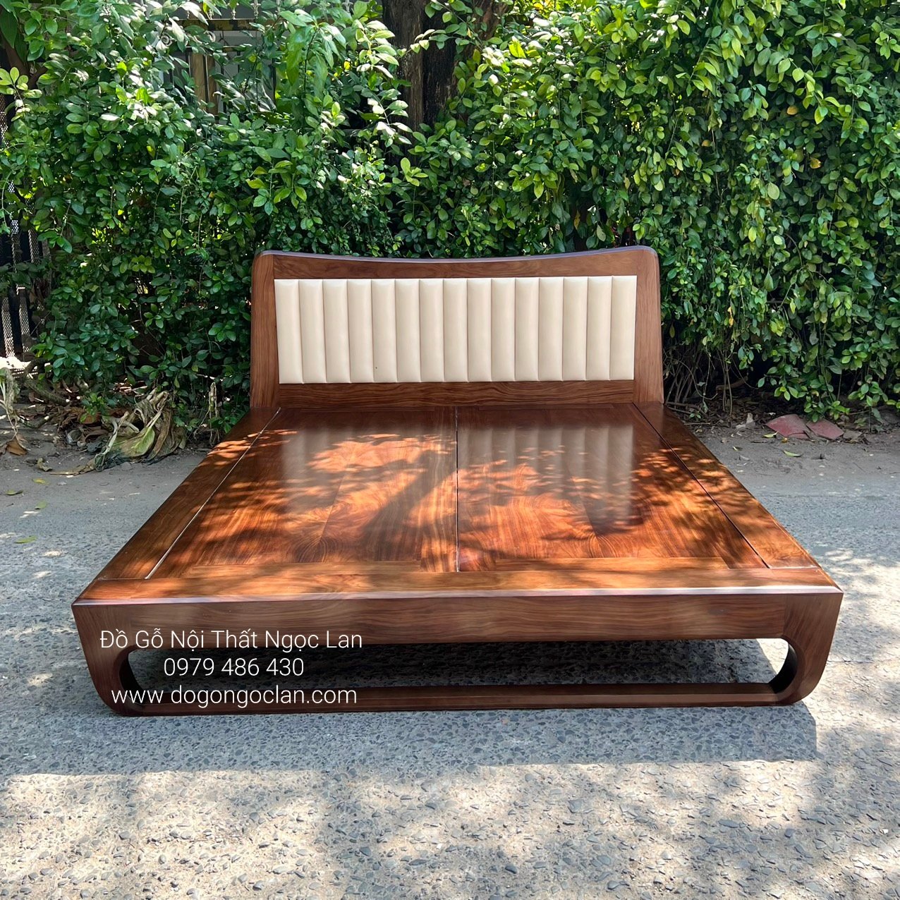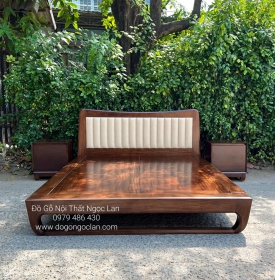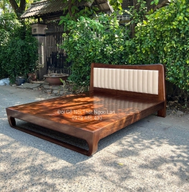 Giường gỗ hương xám màu óc chó hiện đại bọc nệm