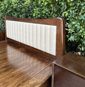 Giường nhật gỗ hương xám màu óc chó bọc nệm 1m8x2m