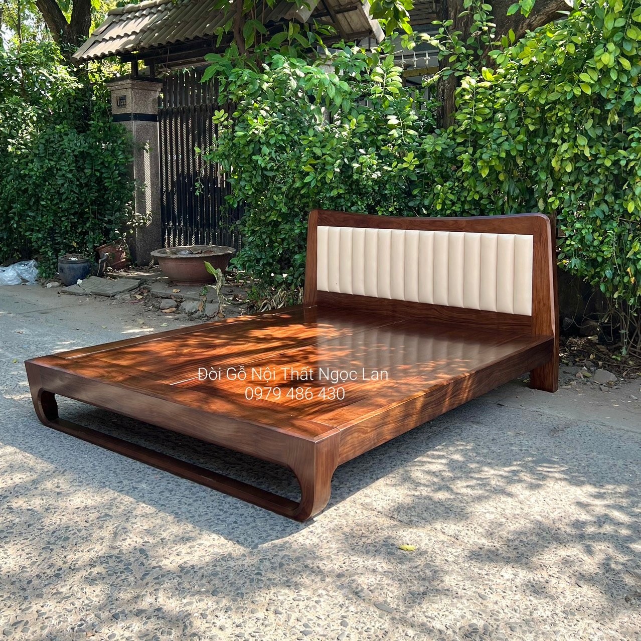 giường chân quỳ màu óc chó đầu bọc nệm 1m6x2m