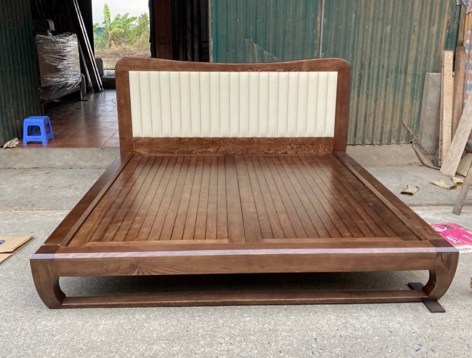 Giường ngủ gỗ sồi lau ,màu óc chó hiện đại
