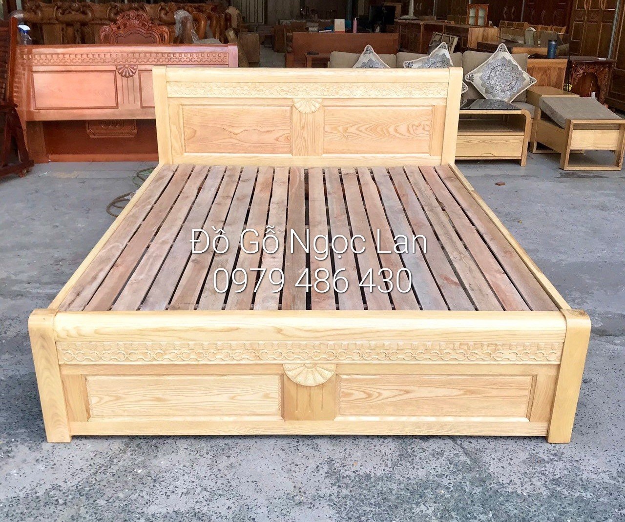 Giường ngủ gỗ sồi nga mẫu quạt - vạt lan giá rẻ