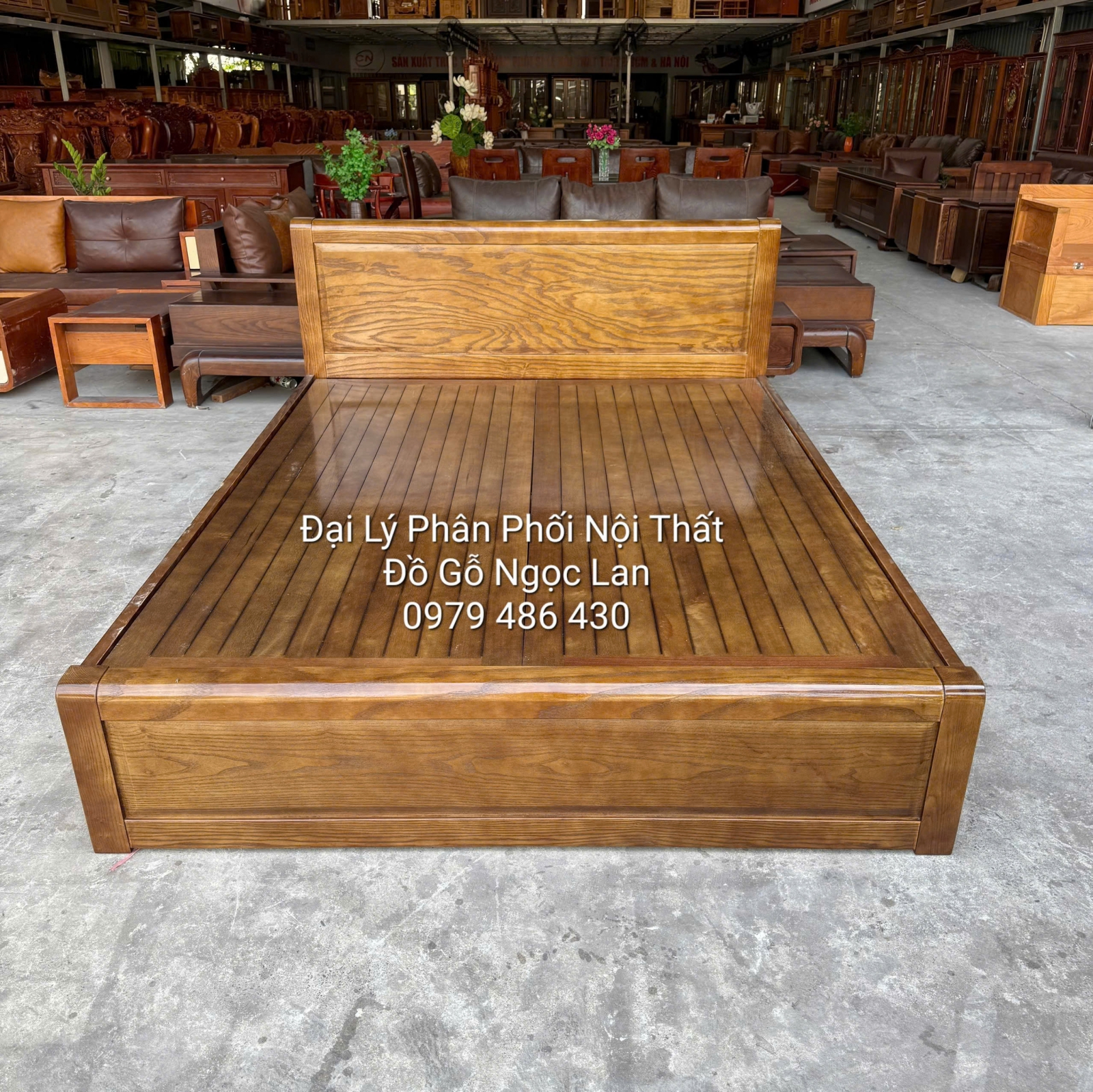 Giường Ngủ Gỗ Sồi Nga Mẫu Trơn Phản Thưa Lau Màu Óc Chó