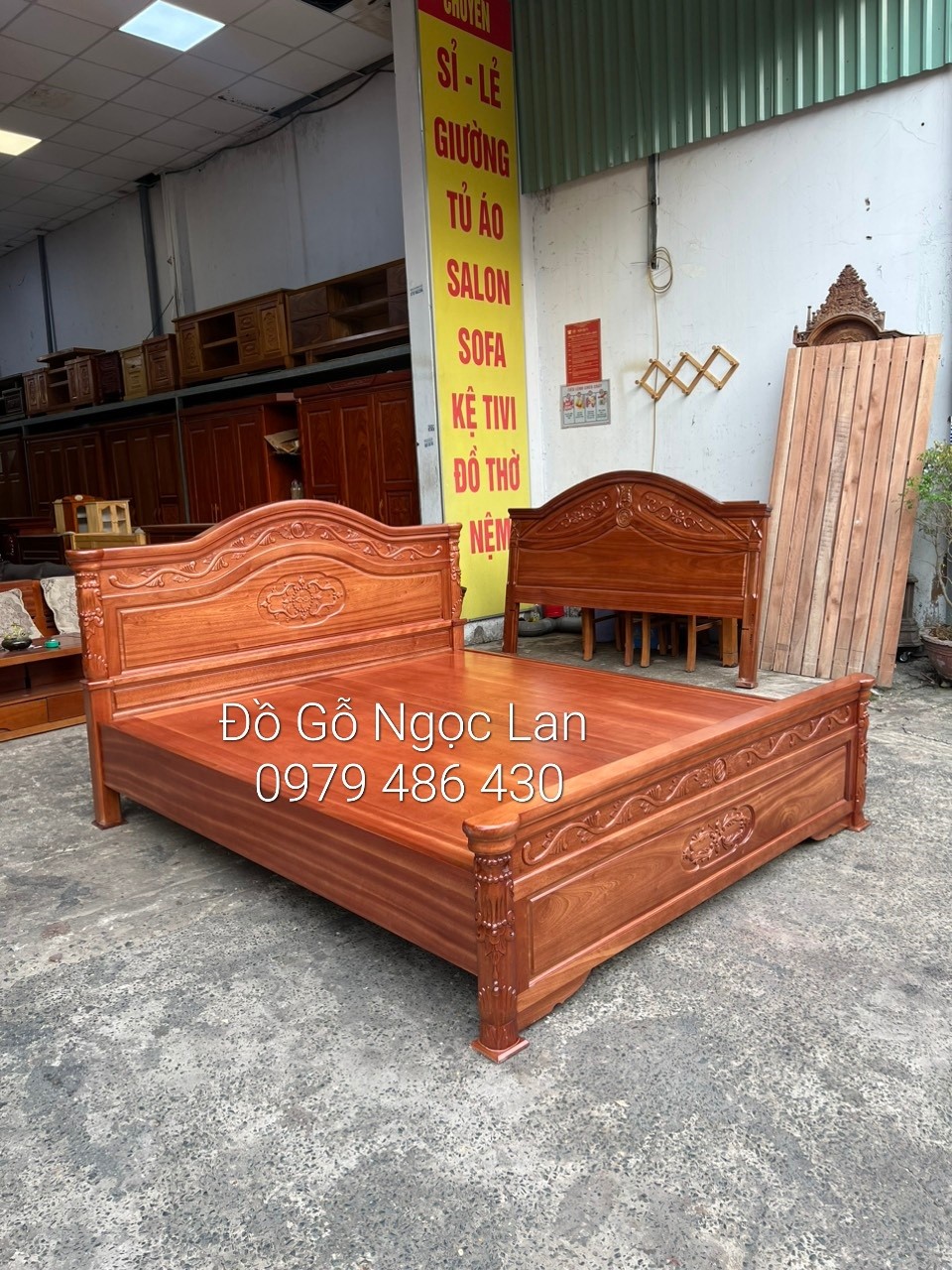 Giường ngủ gỗ xoan đào mẫu nữ hoàng vạt phản