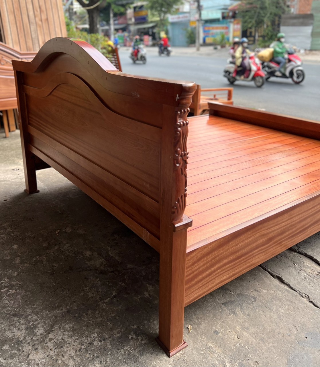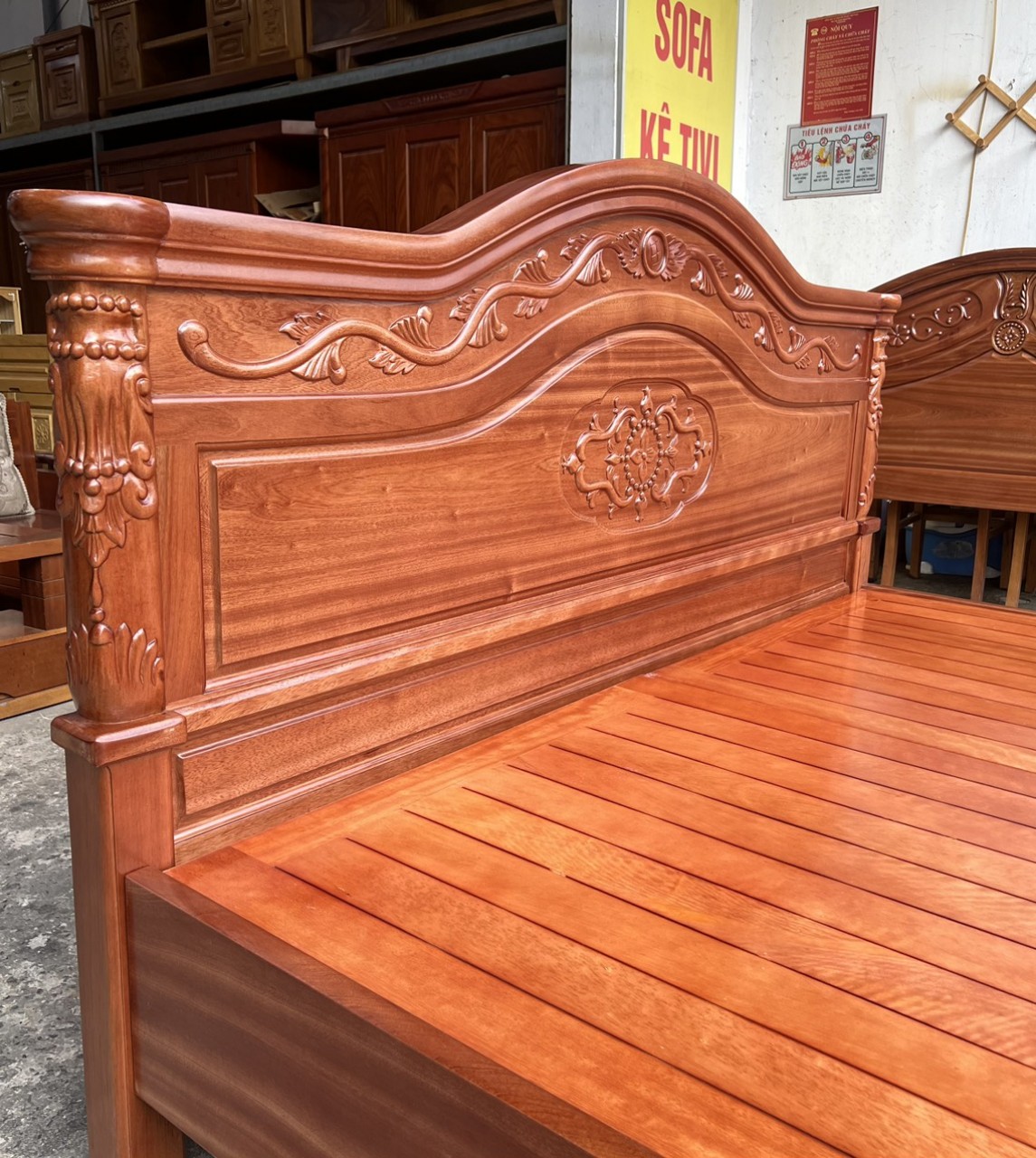 Giường ngủ gỗ xoan đào mẫu nữ hoàng - vạt phản liền