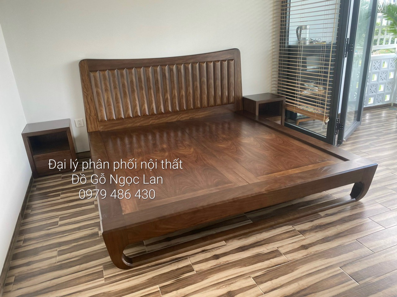 Giường ngủ gỗ hương xám màu óc chó kiểu nhật hiện đại - chân quỳ
