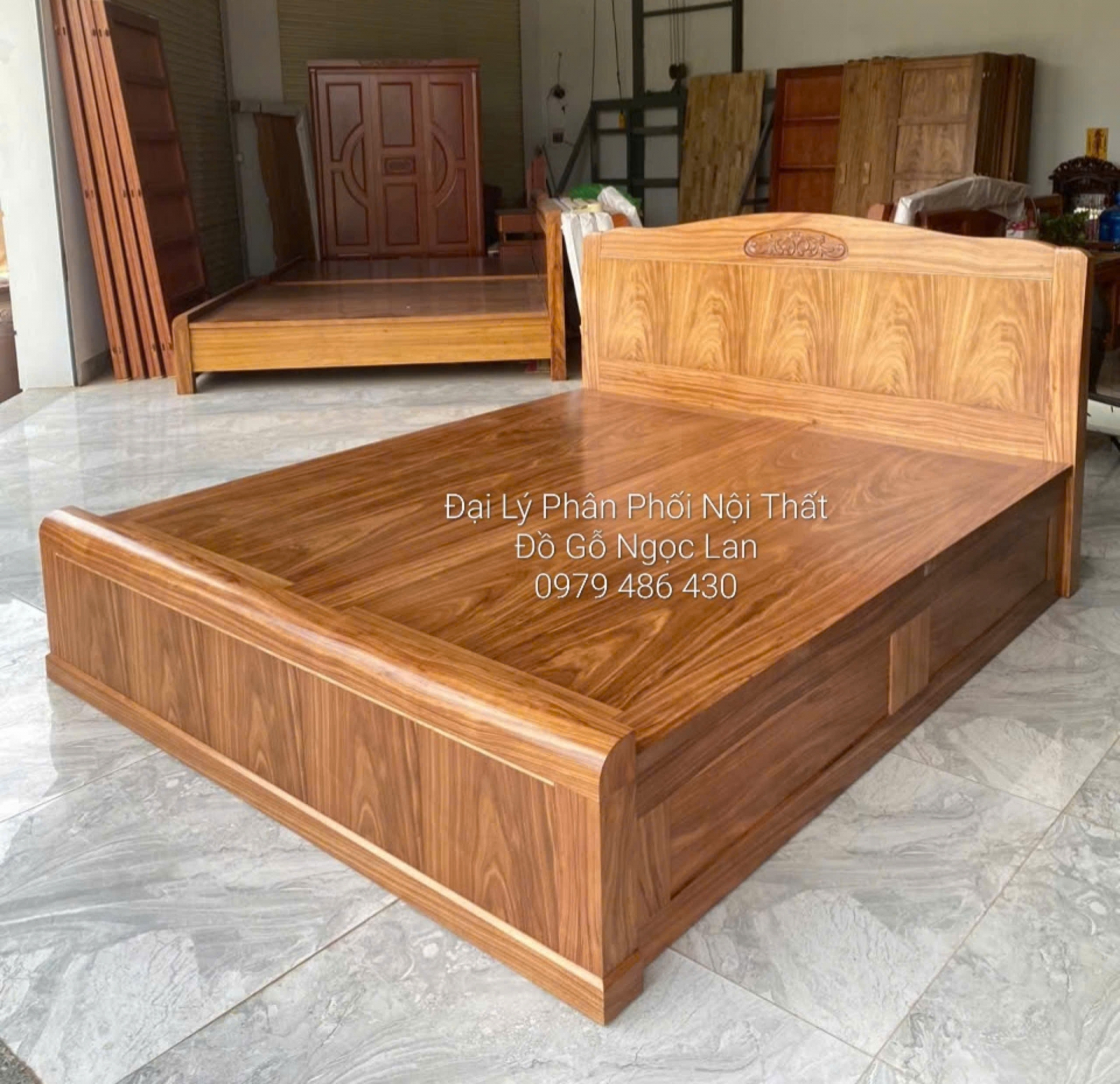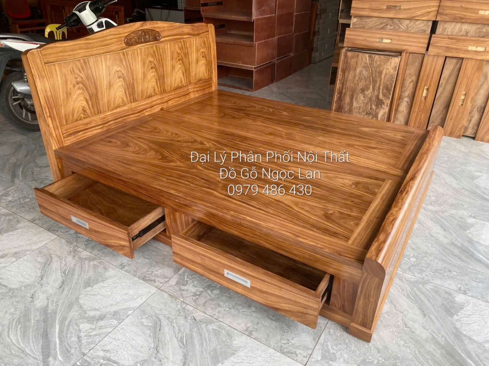 Giường ngủ gỗ hương xám 2 ngăn kéo mẫu vòm hiện đại
