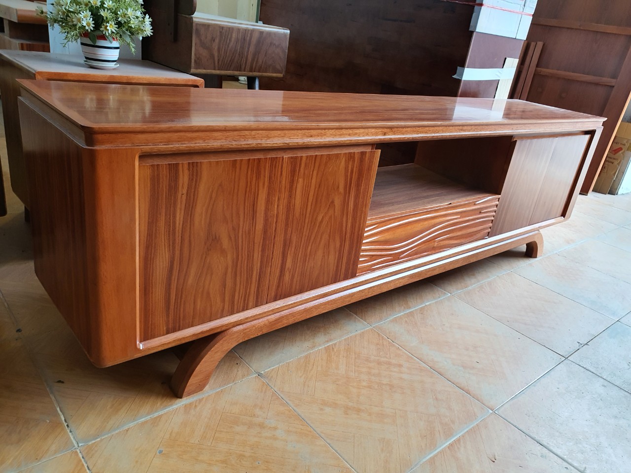 Kệ ti vi gỗ cẩm hiện đại 2m chân xoắn KG 03