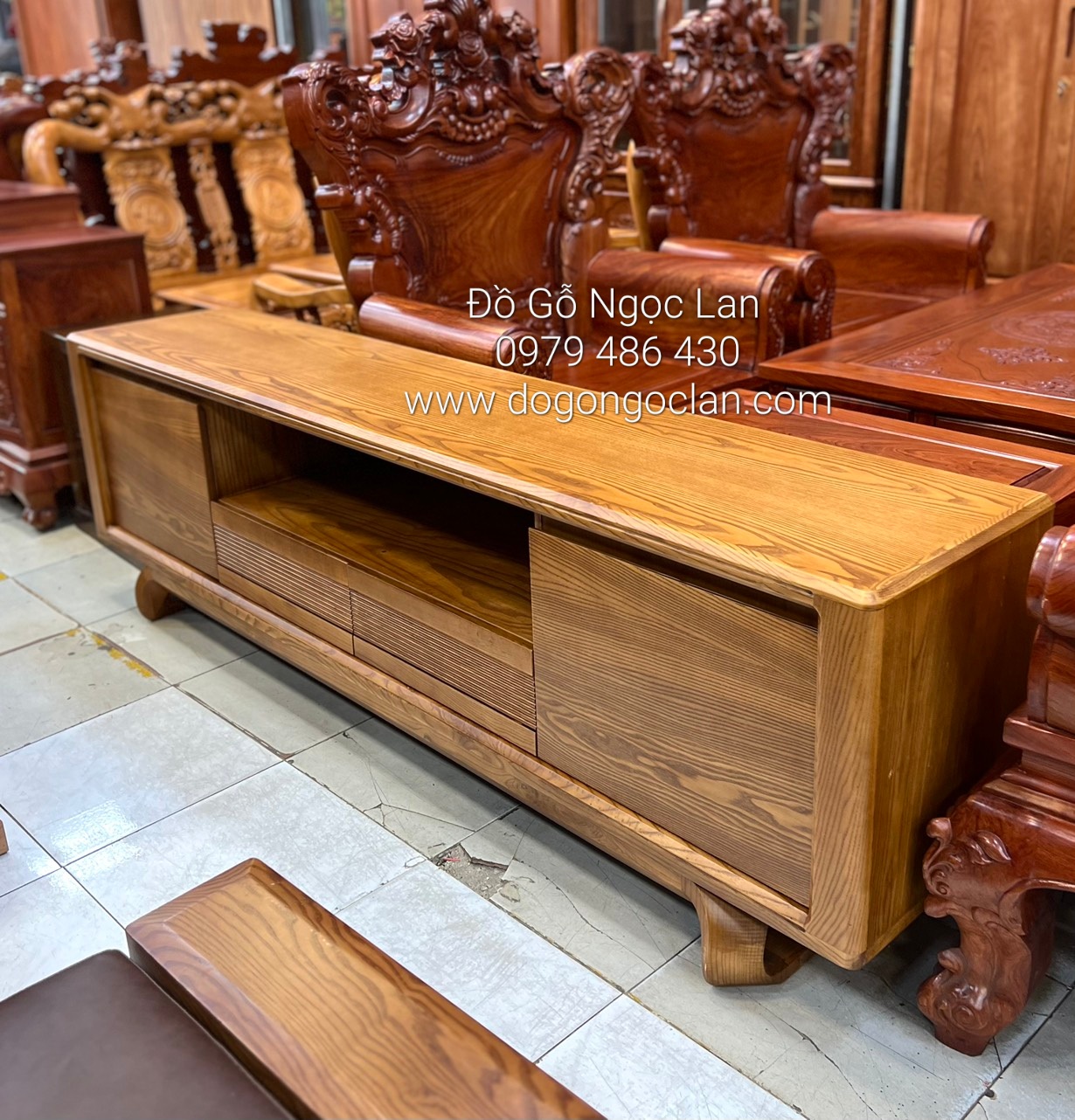 Kích thước kệ tivi gỗ sồi nga lau màu sơn incher cao cấp - bản lề giảm chấn