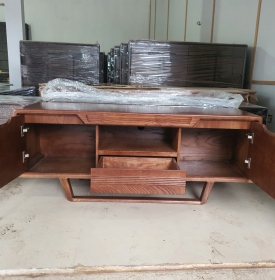 Kệ tivi chân thuyền với thiết kế chân hình thuyền có 4 ngăn kéo ; 2 ngăn kéo to 2 bên được cắt xẻ tỉ mỉ và 2 ngăn kéo ở khong giữa đục xếp li đẹp mắt .Ở giữa là khoang trống để đầu thu .Ngăn kéo được thiết kế mở kiểu tay chìm độc đáo và tiện lợi .
