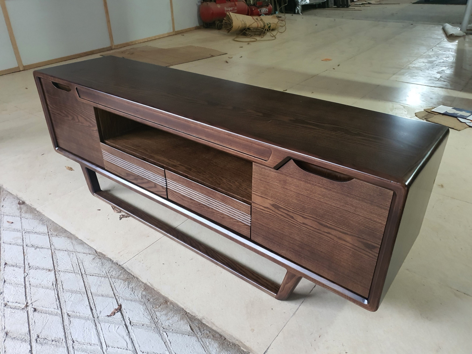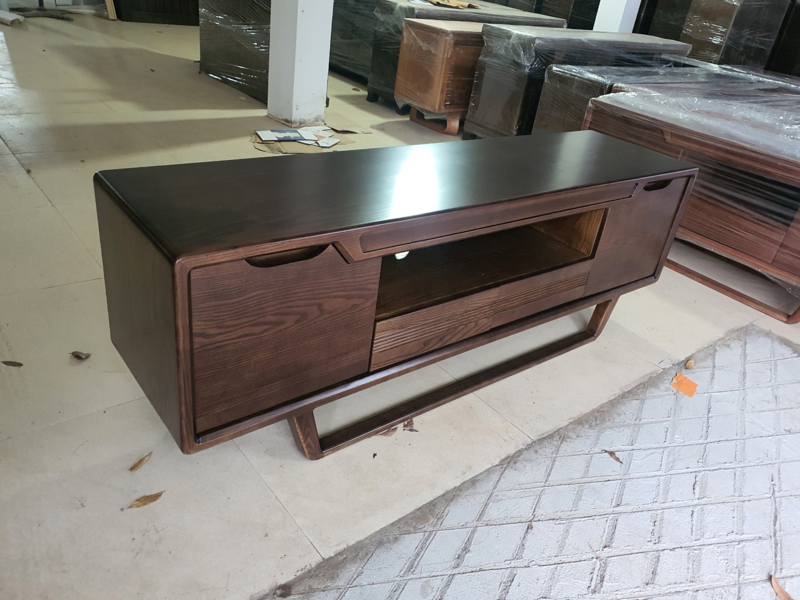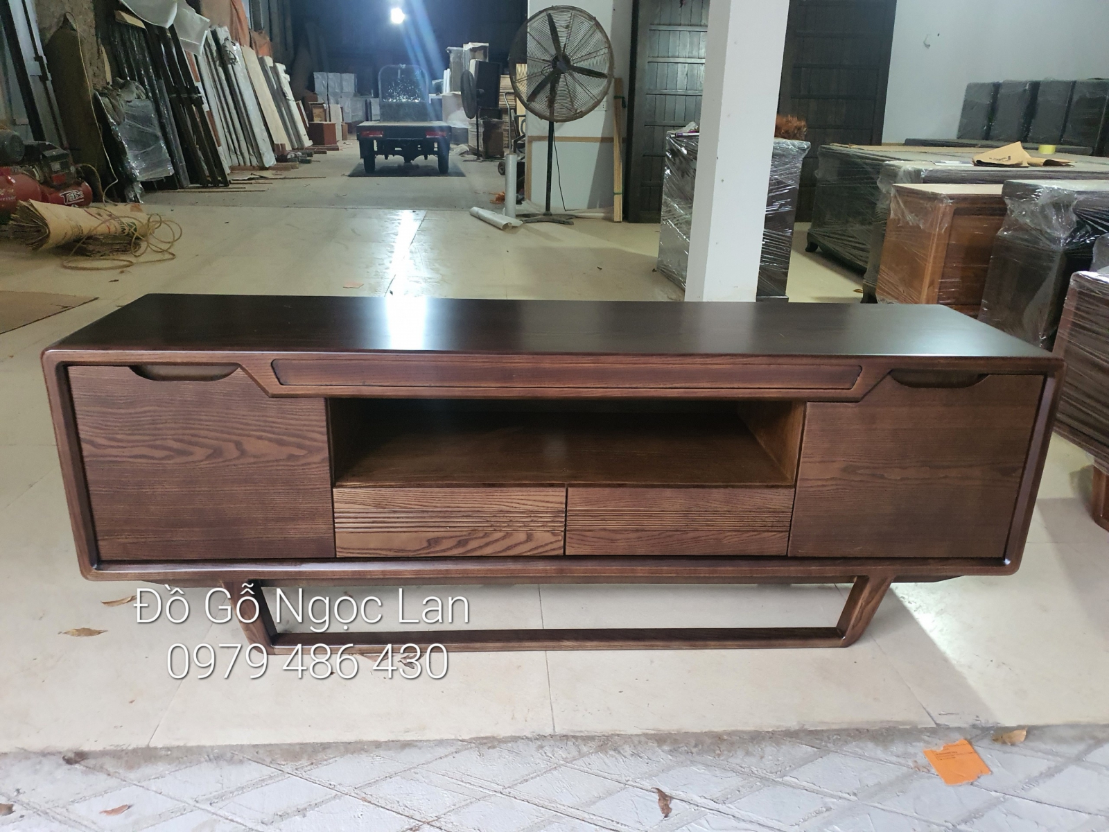 Kệ tivi gỗ sồi nga màu óc chó mẫu chân thuyền