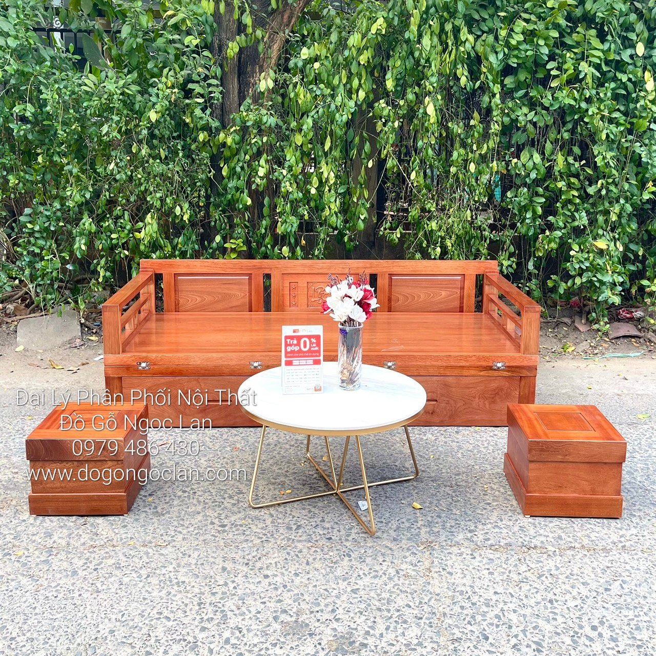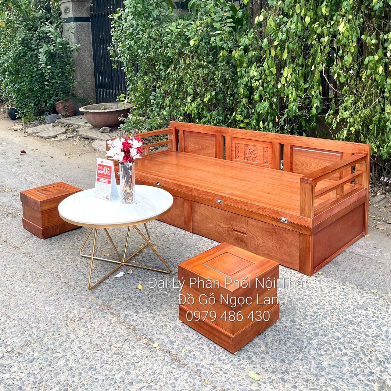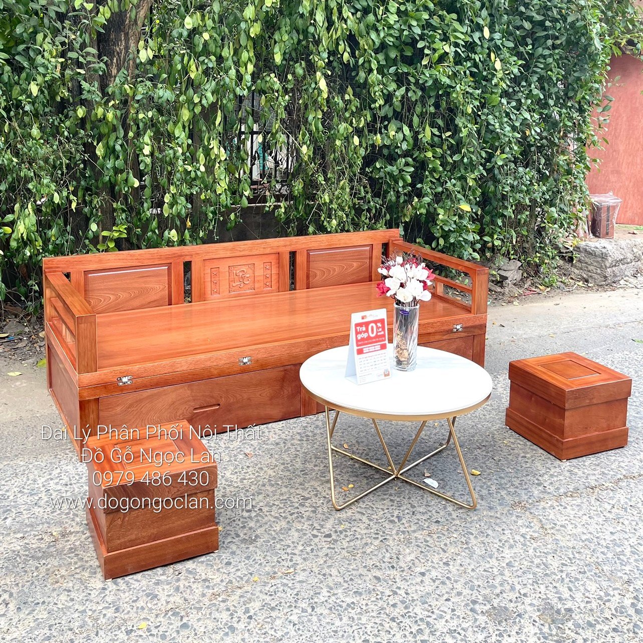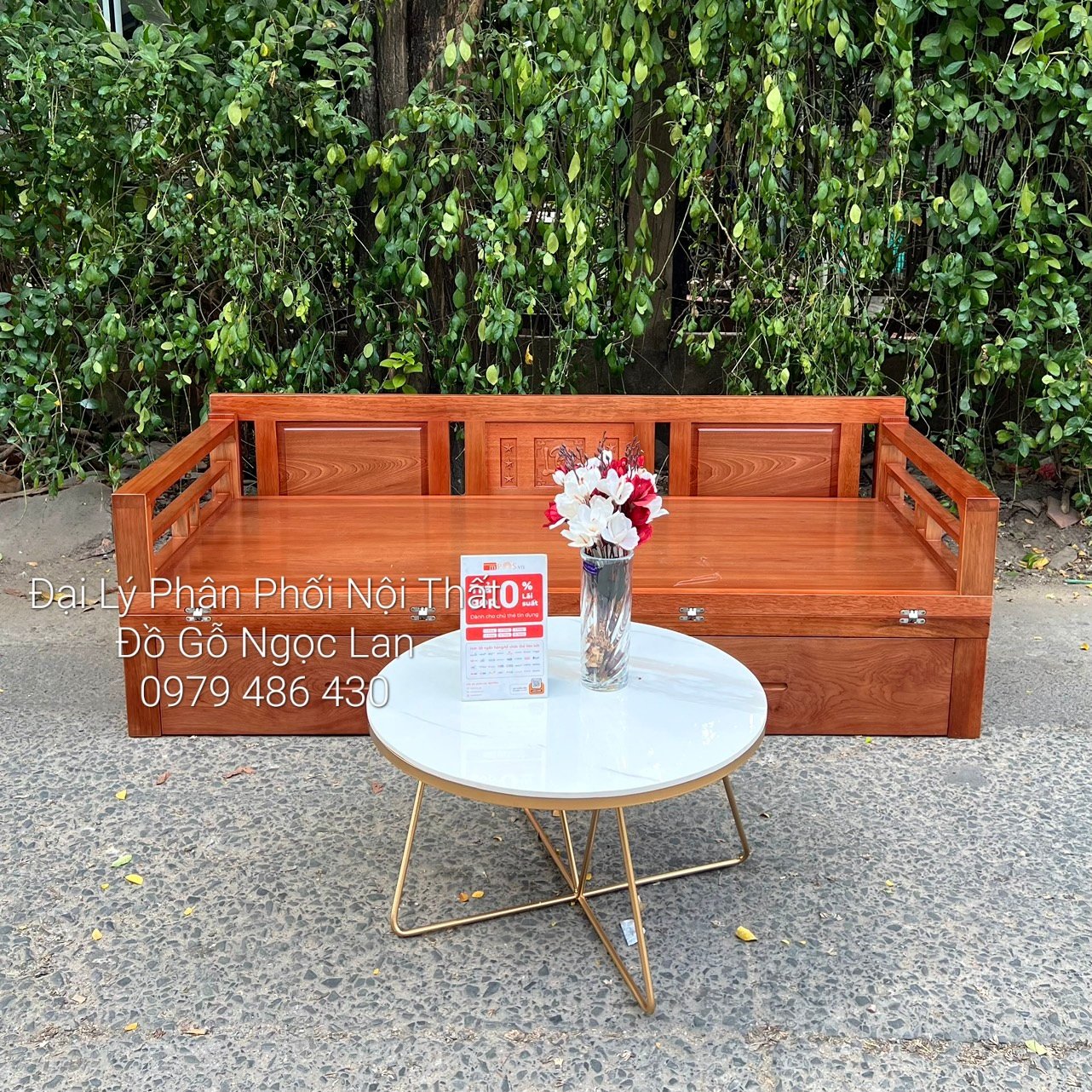 Ghế Gấp Thành Giường 2 Ngăn Kéo Gỗ Xoan Đào Kèm Bàn Trà Mặt Đá - Hiện Đại