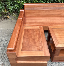 SOFA GỖ XOAN ĐÀO GÓC CHỮ L 2M1 X 1M6 TỰA SOI HIỆN ĐẠI