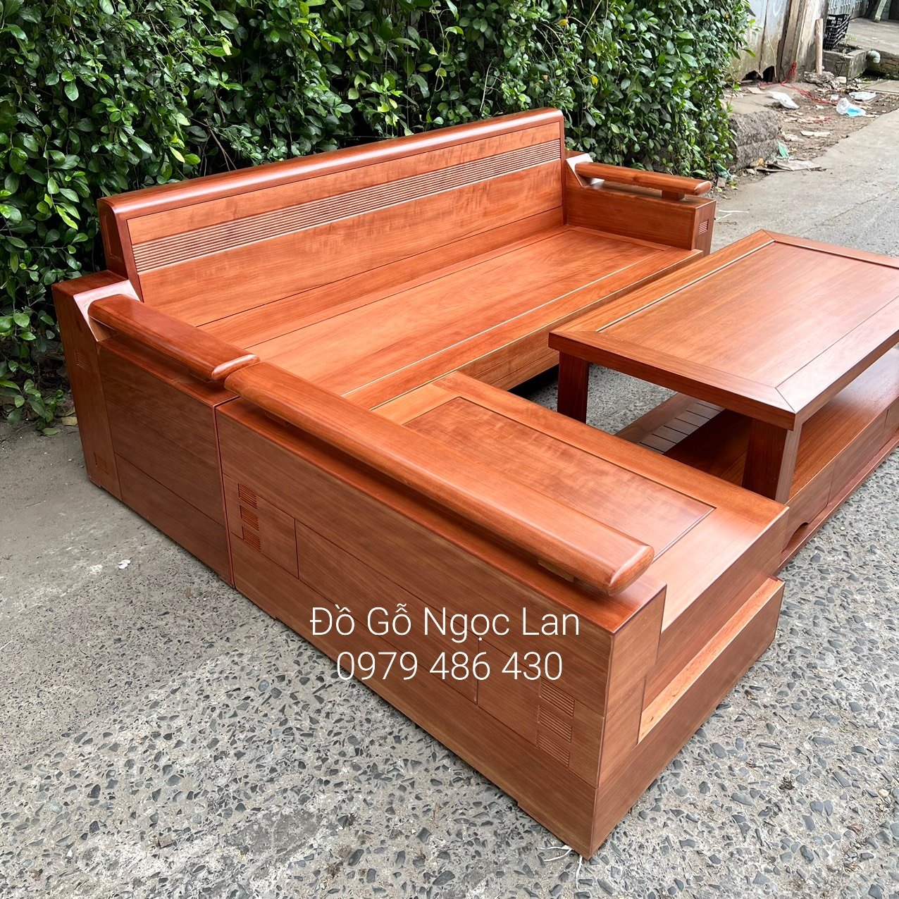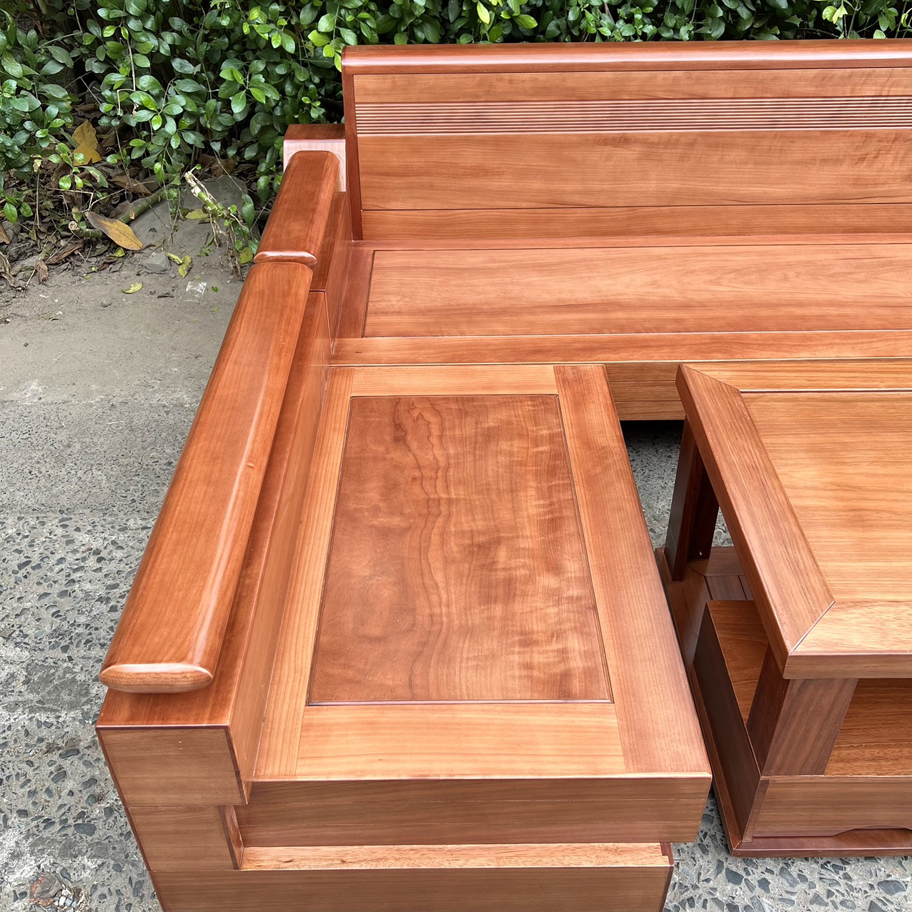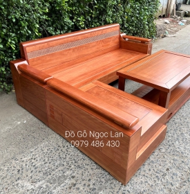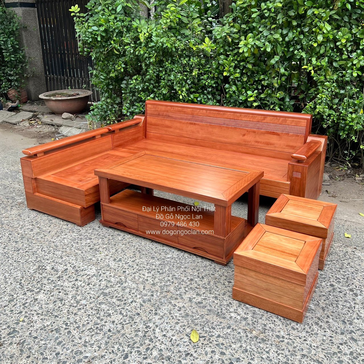 Bàn ghế sofa gỗ xoan đào cao cấp góc L nhỏ gọn tại Đồ Gỗ Ngọc Lan