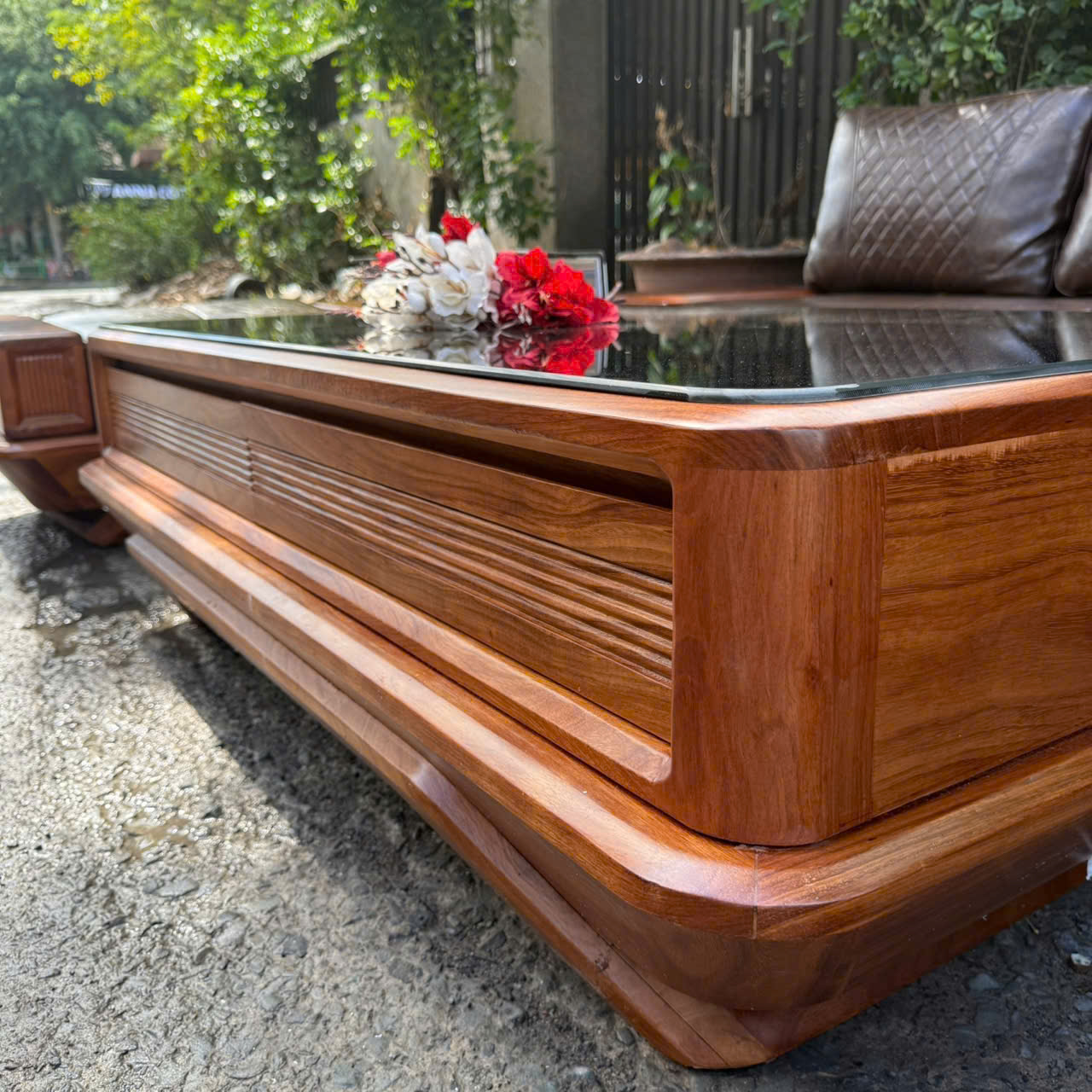 Bàn ghế phòng khách làm hoàn toàn từ gỗ hương vàng tự nhiên với những tấm gỗ có độ dày từ 3 - 4cm có độ cứng và độ bền cực kỳ tốt ,gỗ không bị cong vênh và biến dạng khi chịu lực, chống mối mọt ăn mòn và bám nước cực kỳ tốt .Gỗ được sử lý sấy khô kỹ lưỡng, hạn chế tình trạng nứt nẻ ,co ngót khi sử dụng một thời gian dài .