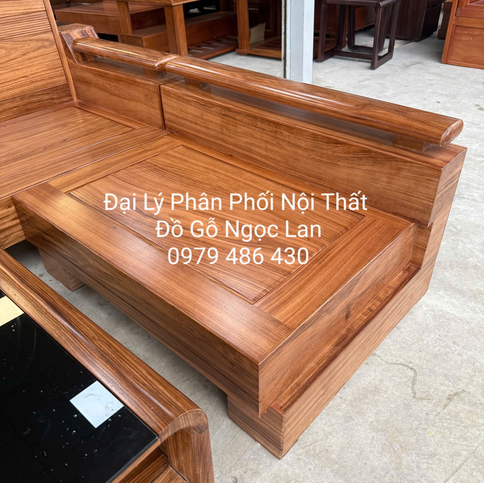 Sofa Gỗ Hương Xám Góc L Tựa Soi 2m1x1m6 Bàn Bom Hiện Đại
