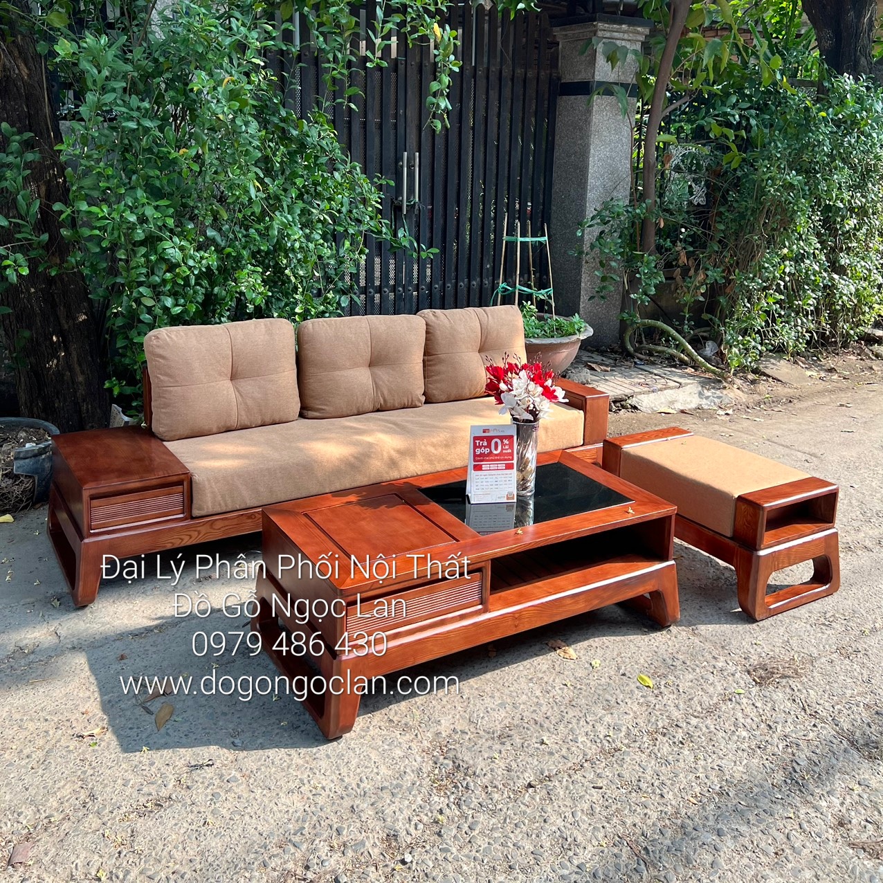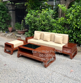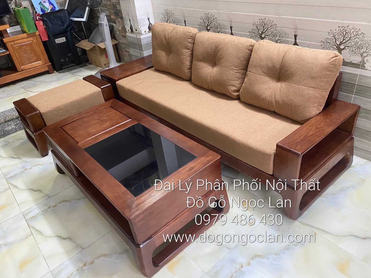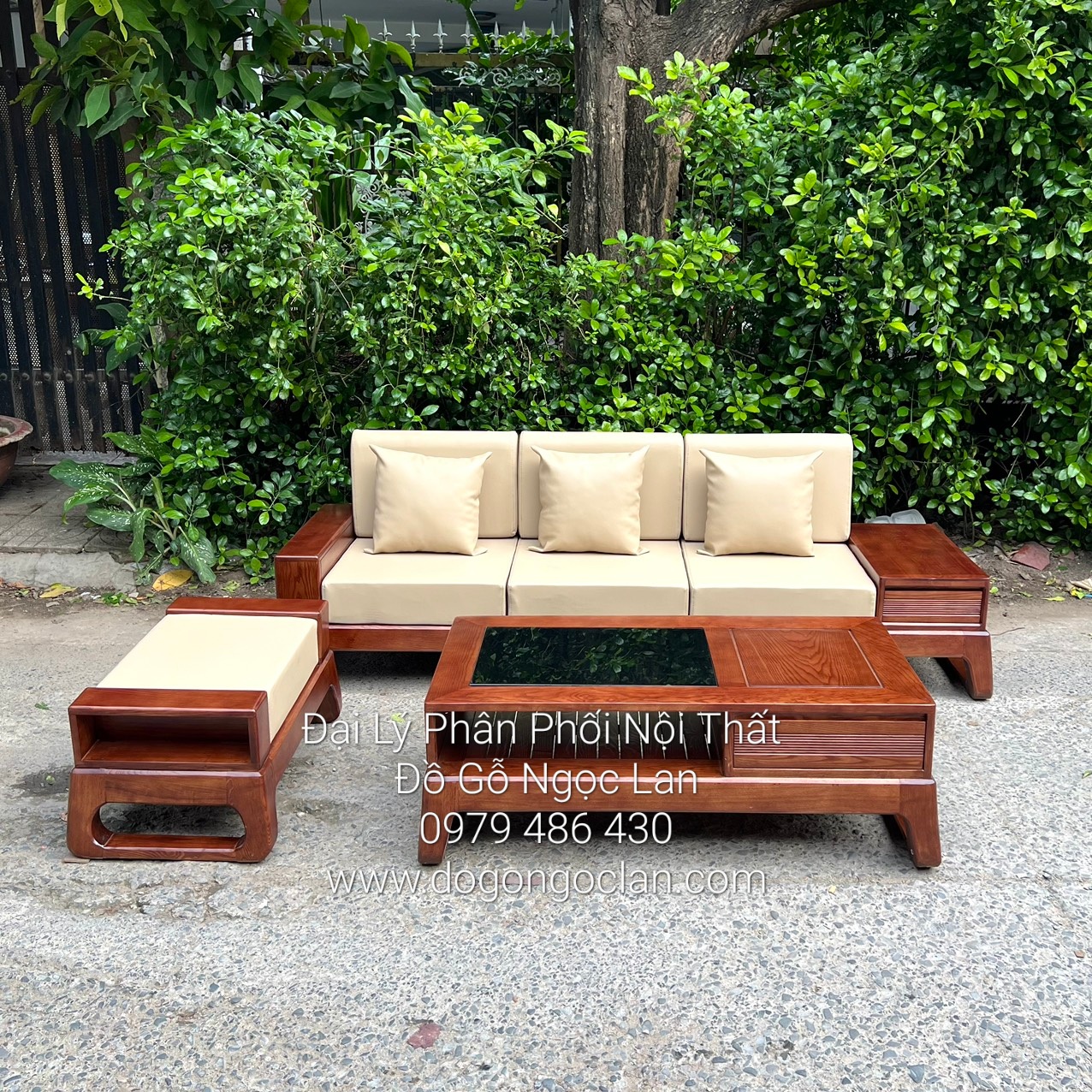 Bộ Bàn Ghế Phòng Khách Gỗ Sồi Nga Màu Óc Chó 2 Văng Chân Thuyền Hiện Đại