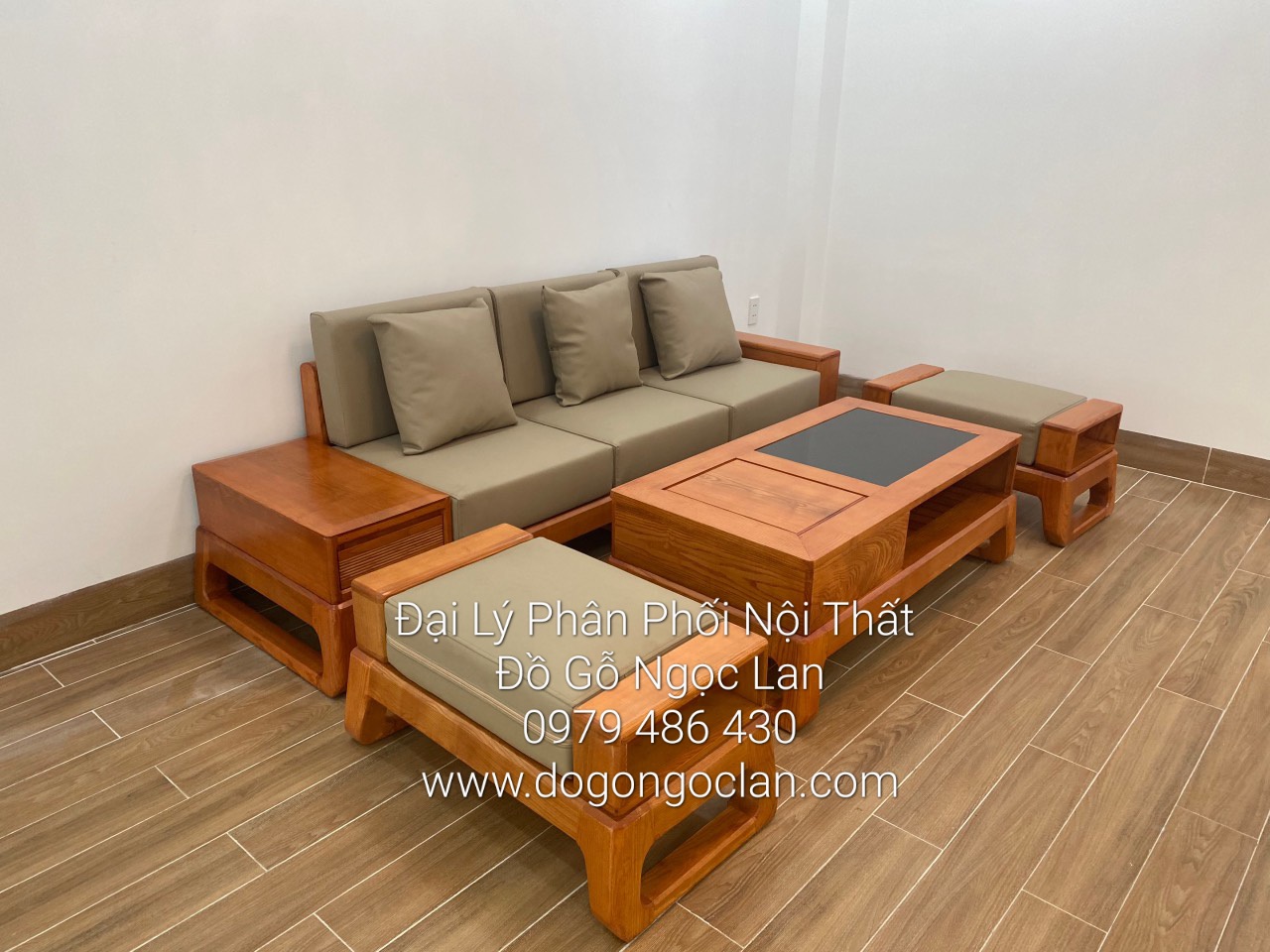 Bộ Bàn Ghế Sofa Gỗ Sồi Nga Màu Óc Chó - Bàn Bom Tay Trứng Hiện Đại 2mx1m8