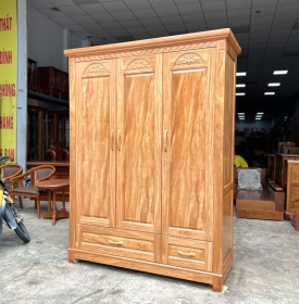 Tủ quần áo 3 cánh gỗ đinh hương mẫu đai hoa - hiện đại