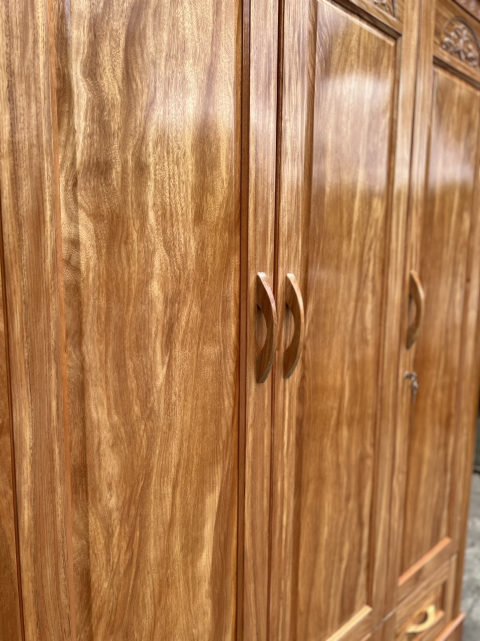 Tủ 3 cánh gỗ đinh hương mẫu đai hoa hiện đại T DH 04