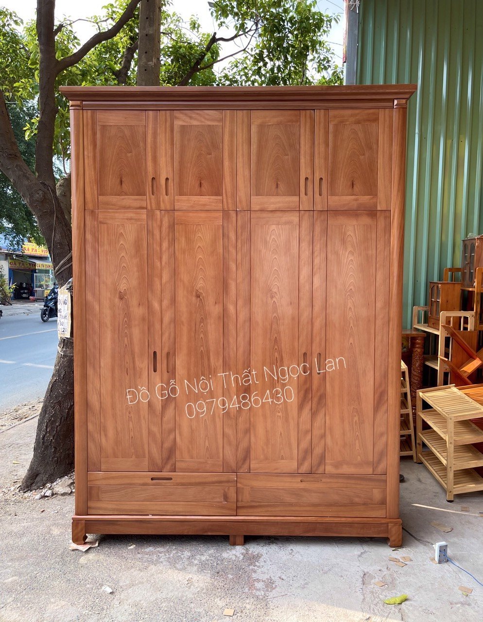 Tủ 4 cánh 2 tầng gỗ xoan đào - hiện đại
