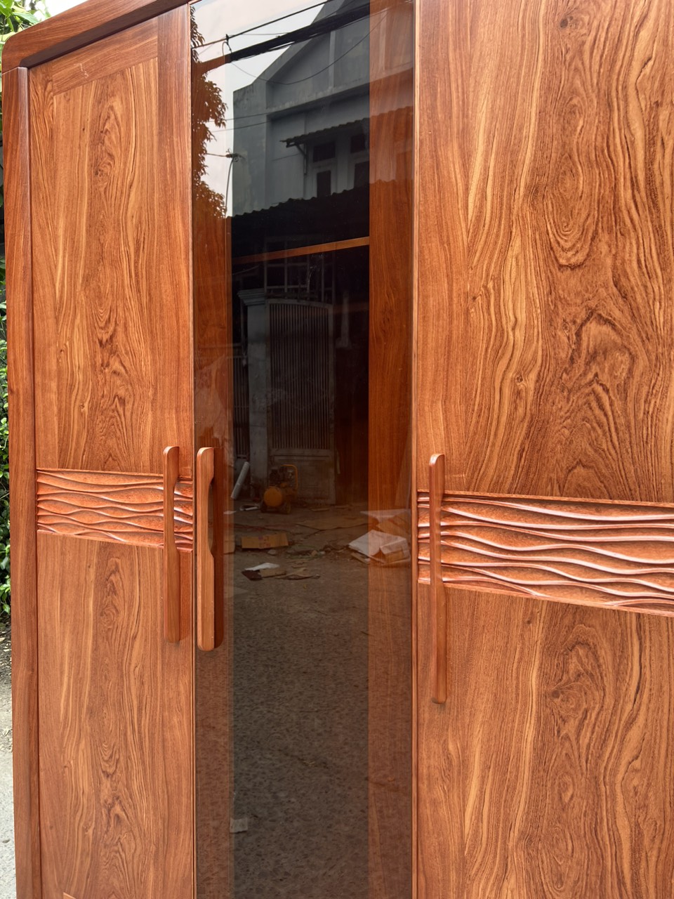 TỦ ÁO GỖ HƯƠNG ĐÁ 3 CÁNH MẪU SÓNG KẾT HỢP CÁNH KÍNH CƯỜNG LỰC