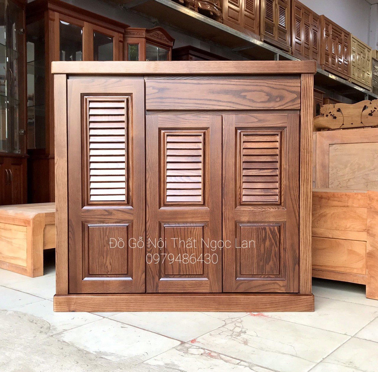 Tủ giày 3 cánh gỗ Sồi - lau màu óc chó
