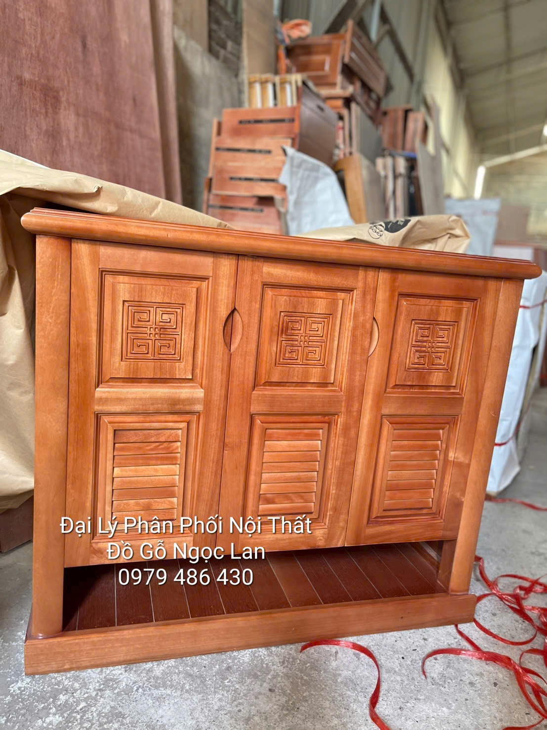 Tủ Giày Dép 3 Cánh Gỗ Xoan Đào Hở Chân - Thiết Kế Để Dép Đi