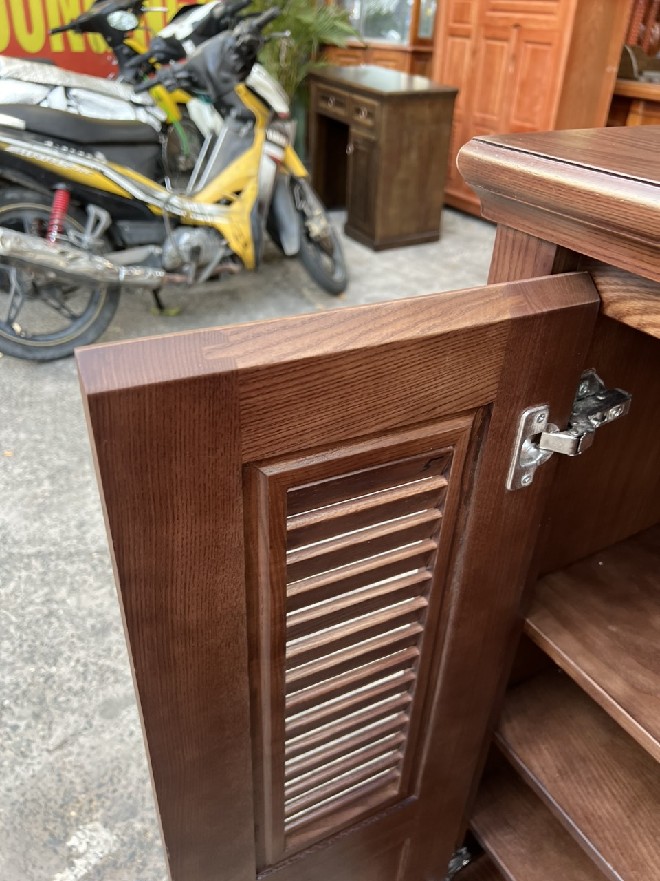 Tủ giày dép gỗ sồi lau màu óc chó 4 cánh bền đẹp