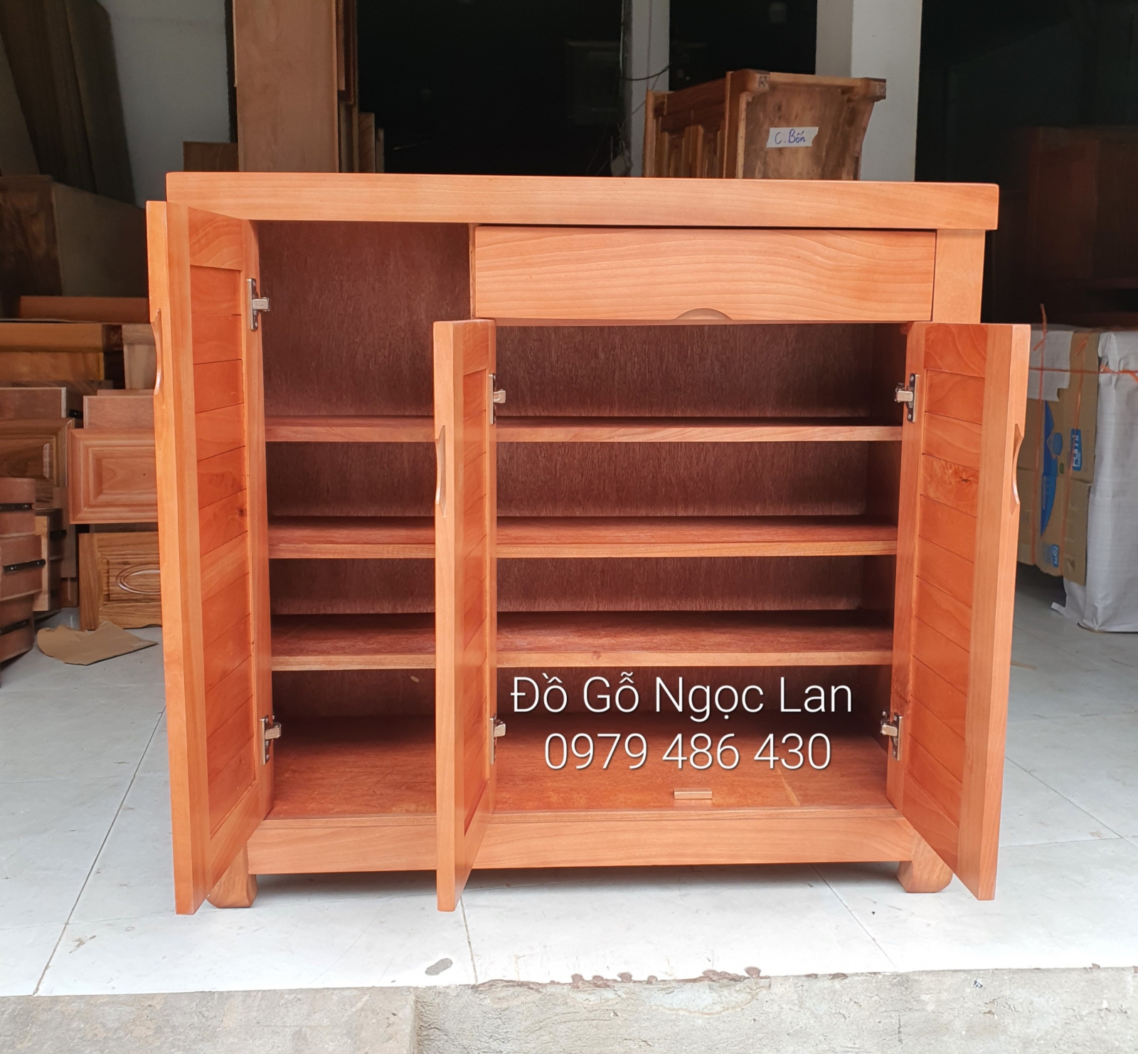 Tủ giày gỗ tự nhiên xoan đào 3 cánh cao cấp tại TPHN - Đồ Gỗ Ngọc Lan