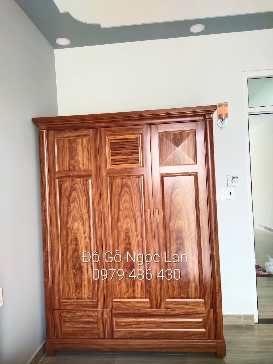 Tủ quần áo gỗ Cẩm 3 cánh hiện đại