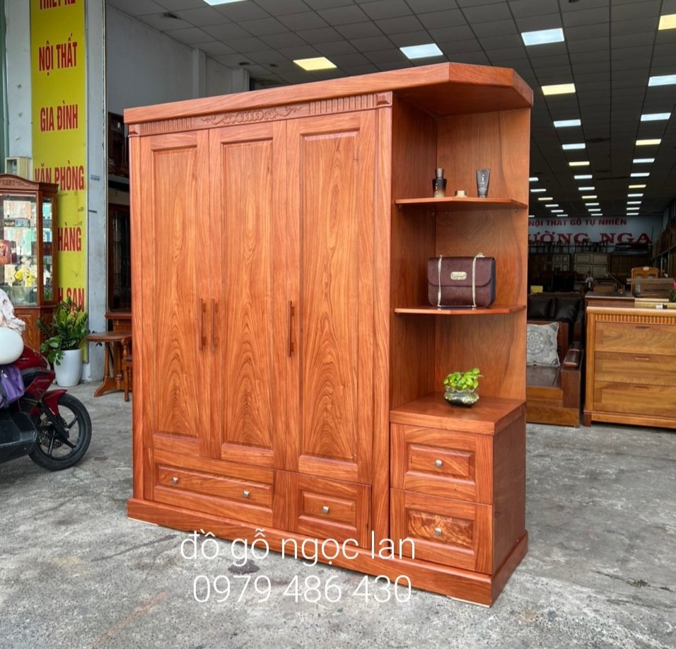 tủ quần áo 3 cánh gỗ hương đá góc trang trí - vế phải , hiện đại T HD 12