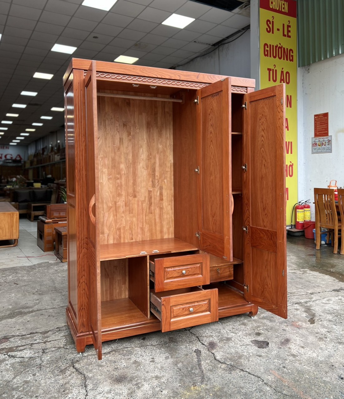 Tủ áo gỗ hương đá 3 cánh hiện đại - mẫu chơn