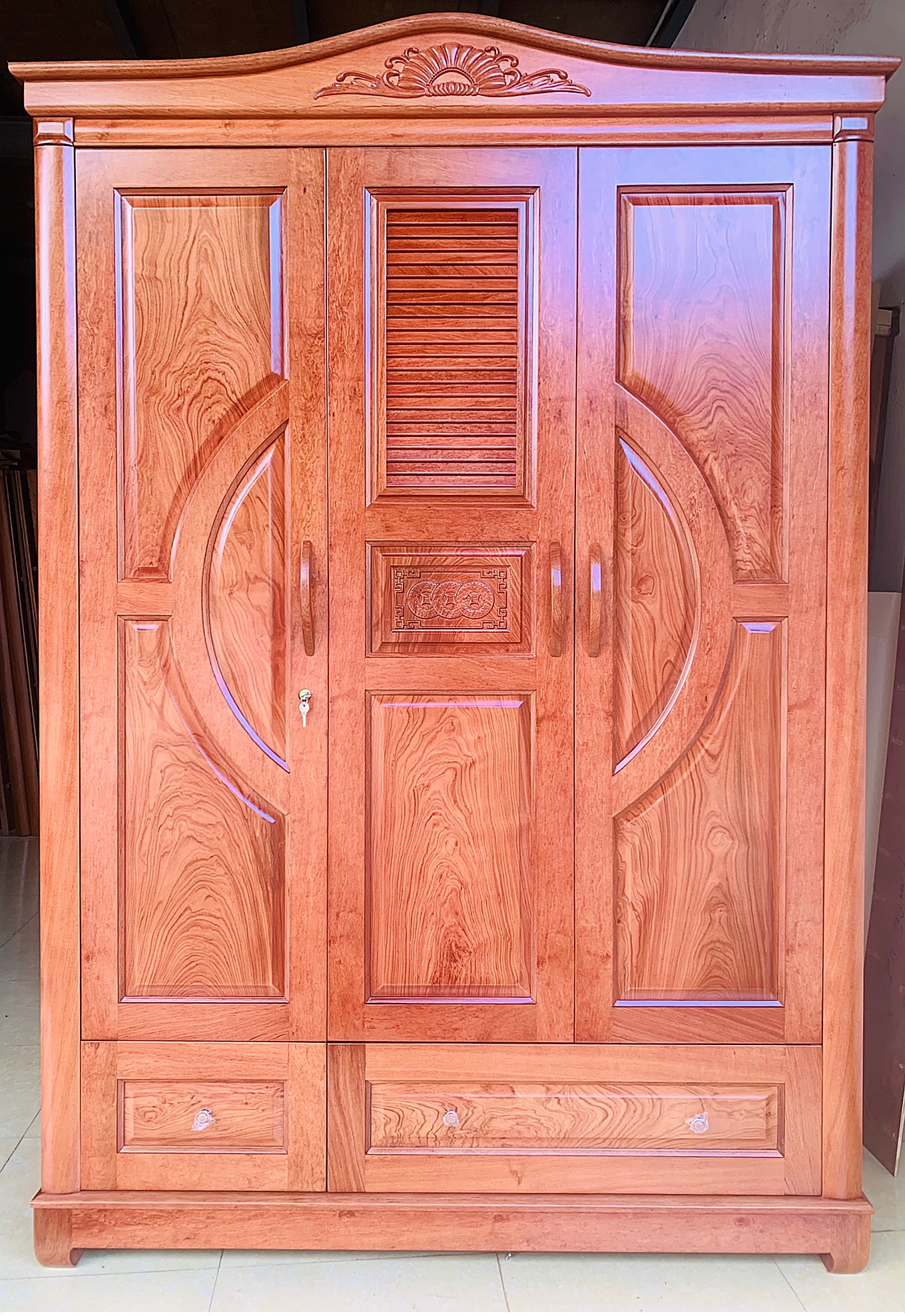 Tủ quần áo 3 cánh gỗ hương đá mẫu đai cong - hiện đại