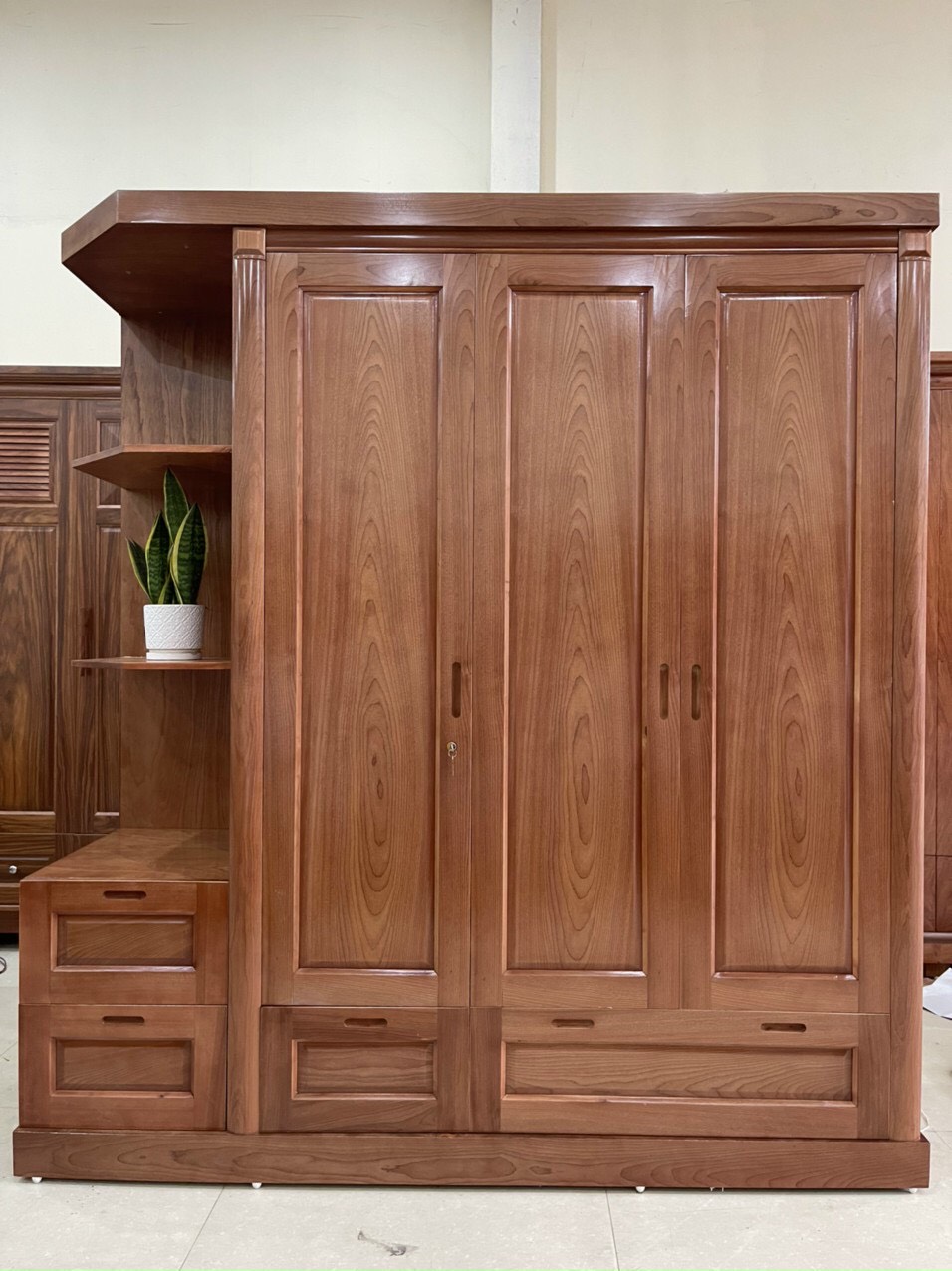Tủ quần áo 3 cánh + góc trang trí gỗ xoan đào T XD 13