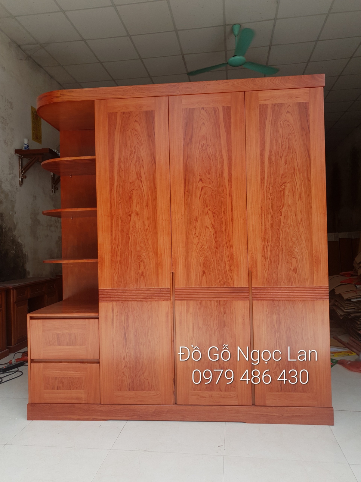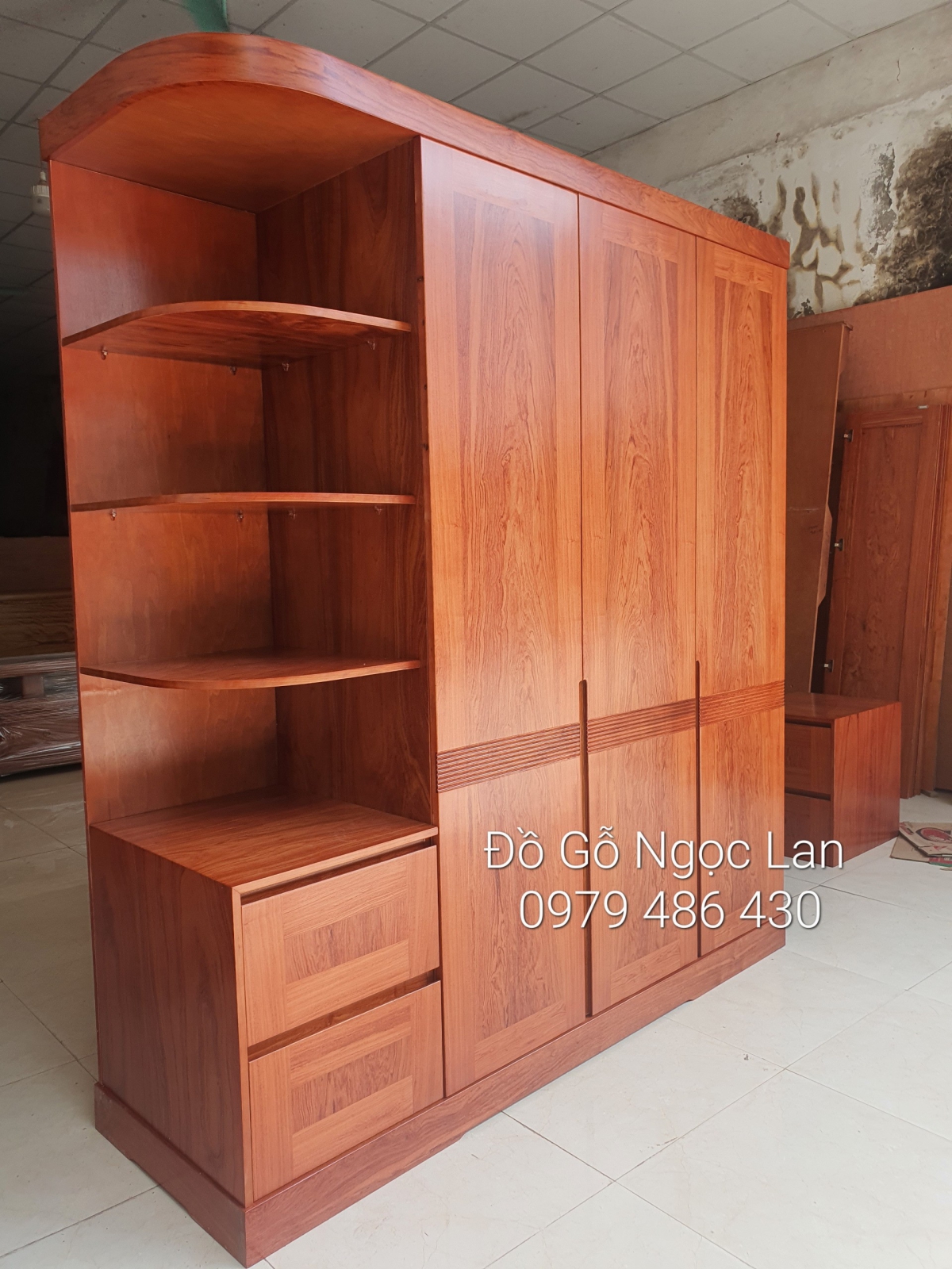 Tủ áo gỗ hương đá 3 cánh kèm góc trang trí - tủ quần áo gỗ tự nhiên tại Đồ Gỗ Ngọc Lan
