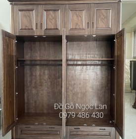 Tủ quần áo 4 cánh 2 tầng gỗ óc chó cao cấp - hiện đại