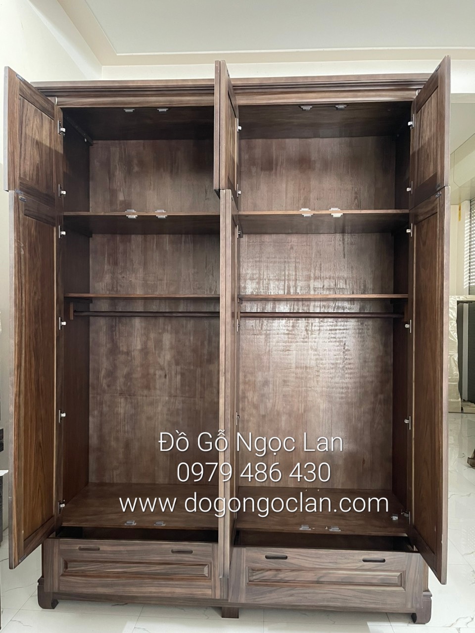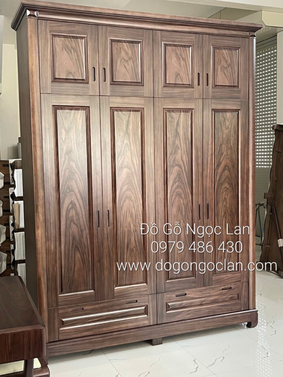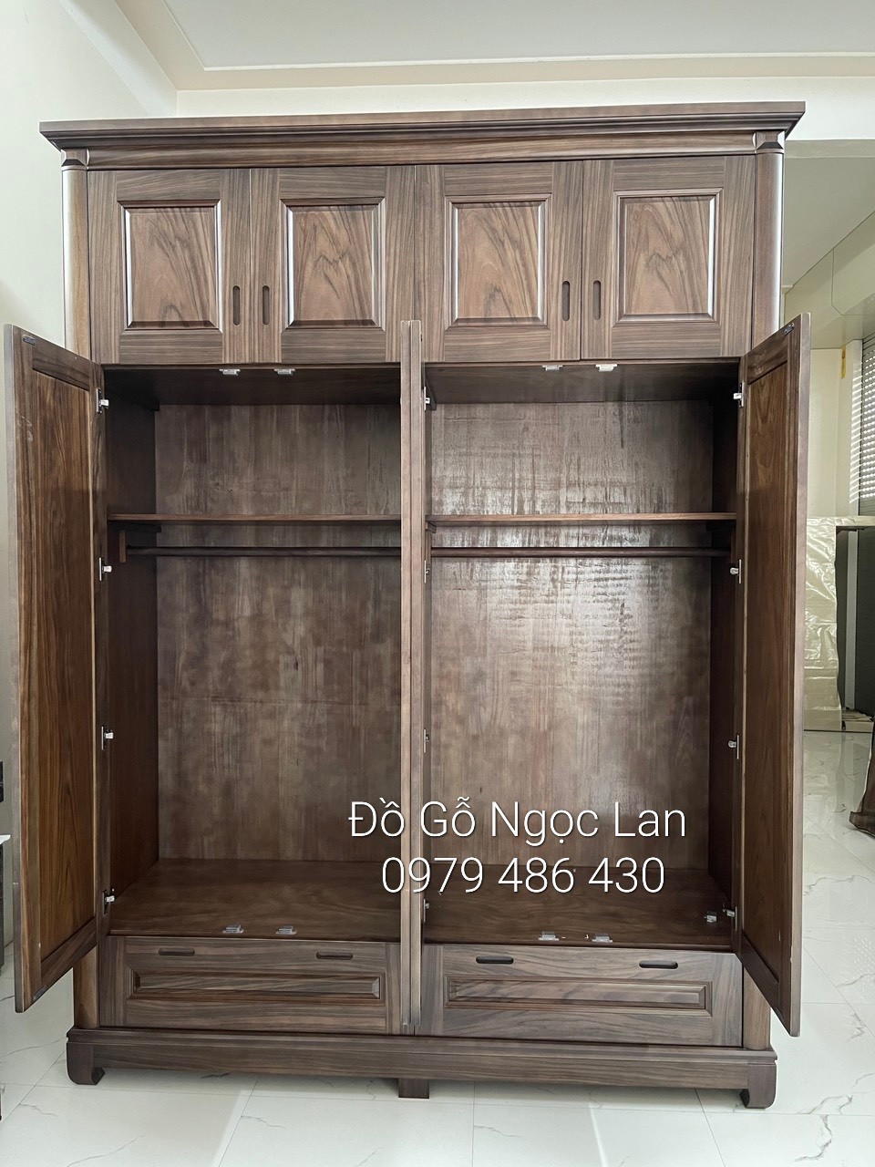 Tủ quần áo 4 cánh 2 tầng gỗ óc chó - hiện đại cao cấp