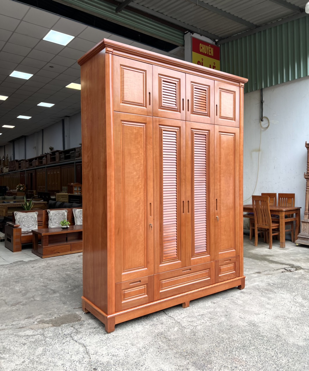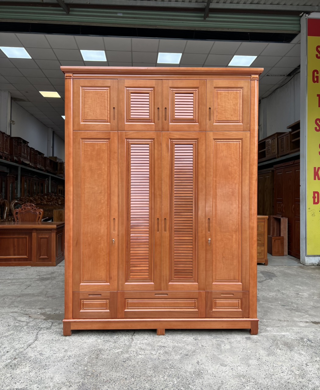 Tủ quần áo 4 cánh 2 tầng gỗ xoan đào mẫu chớp T XD10