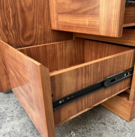 Về ngoại thất, tủ quần áo gỗ tự nhiên cao cấp được trang trí đơn giản hầu như không hề có hoa văn, họa tiết nhằm để làm nổi bật toàn bộ vẻ đẹp tự nhiên vốn có của gỗ Cẩm với những đường vân gỗ mềm mại tuyệt đẹp, uyển chuyển như những thiếu nữ đang nhảy múa khắp mặt tủ tạo cho người nhìn sự tò mò và thích thú khi ngắm nhìn. Chắc hẳn chiếc tủ quần áo gỗ tự nhiên sẽ là điểm nhấn nổi bật cho không gian phòng ngủ của bạn, giúp phòng ngủ thêm gọn gàng hơn, tạo nên vẻ đẹp sang trọng và quyến rũ đến bất ngờ.