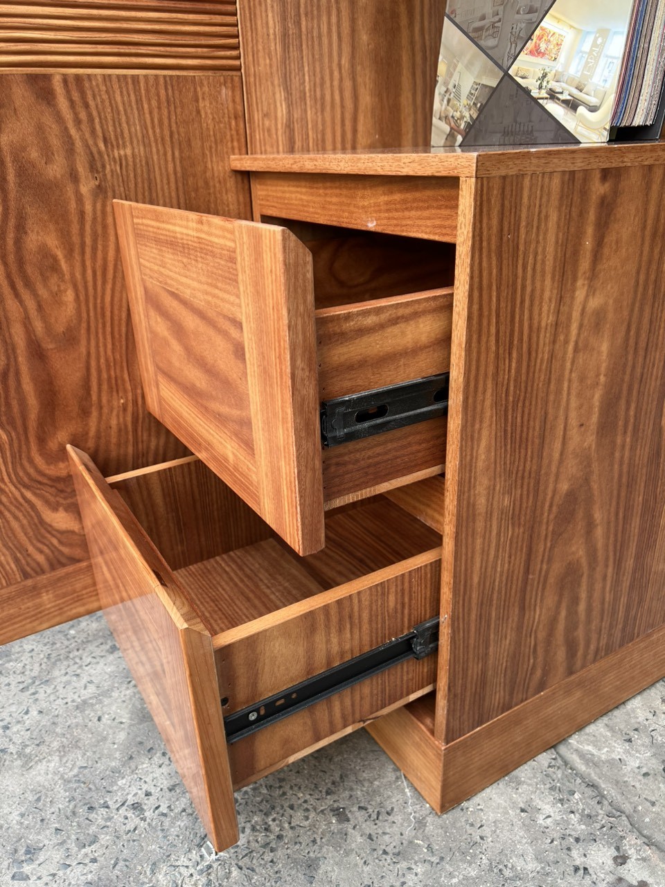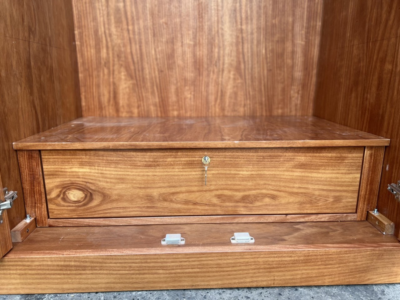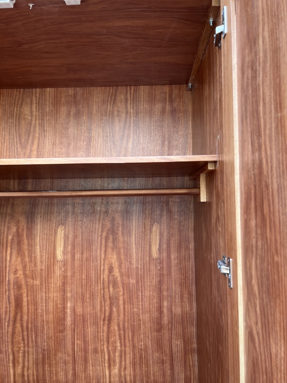 Tủ quần áo gỗ Cẩm 4 cánh có thiết kế nội thất khá tiện nghi, khung tủ chắc chắn với 2 buồng có chia ngăn (ngăn có thể tháo rời) và hộc tủ cho đồ dùng cá nhân (tay cầm sẽ được lắp vào sau) giúp gia chủ có thể linh hoạt hơn trong việc sắp xếp không gian bên trong tủ để thuận tiện nhất khi treo hay đặt nhiều quần áo