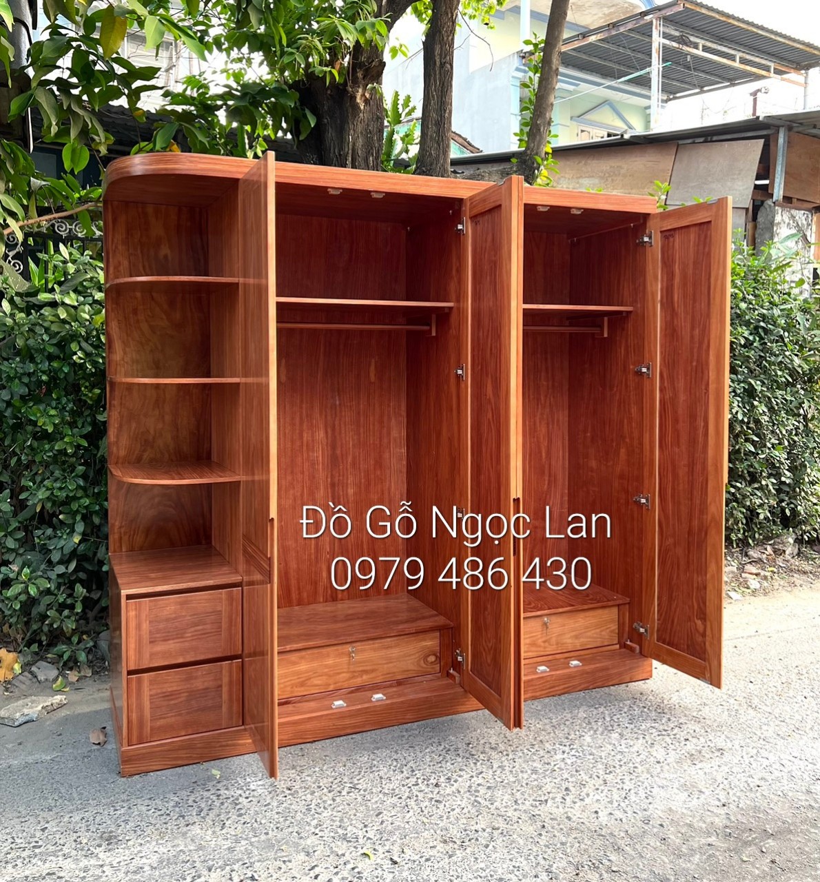 tủ quần áo gỗ cẩm 4 cánh kèm kệ trang trí