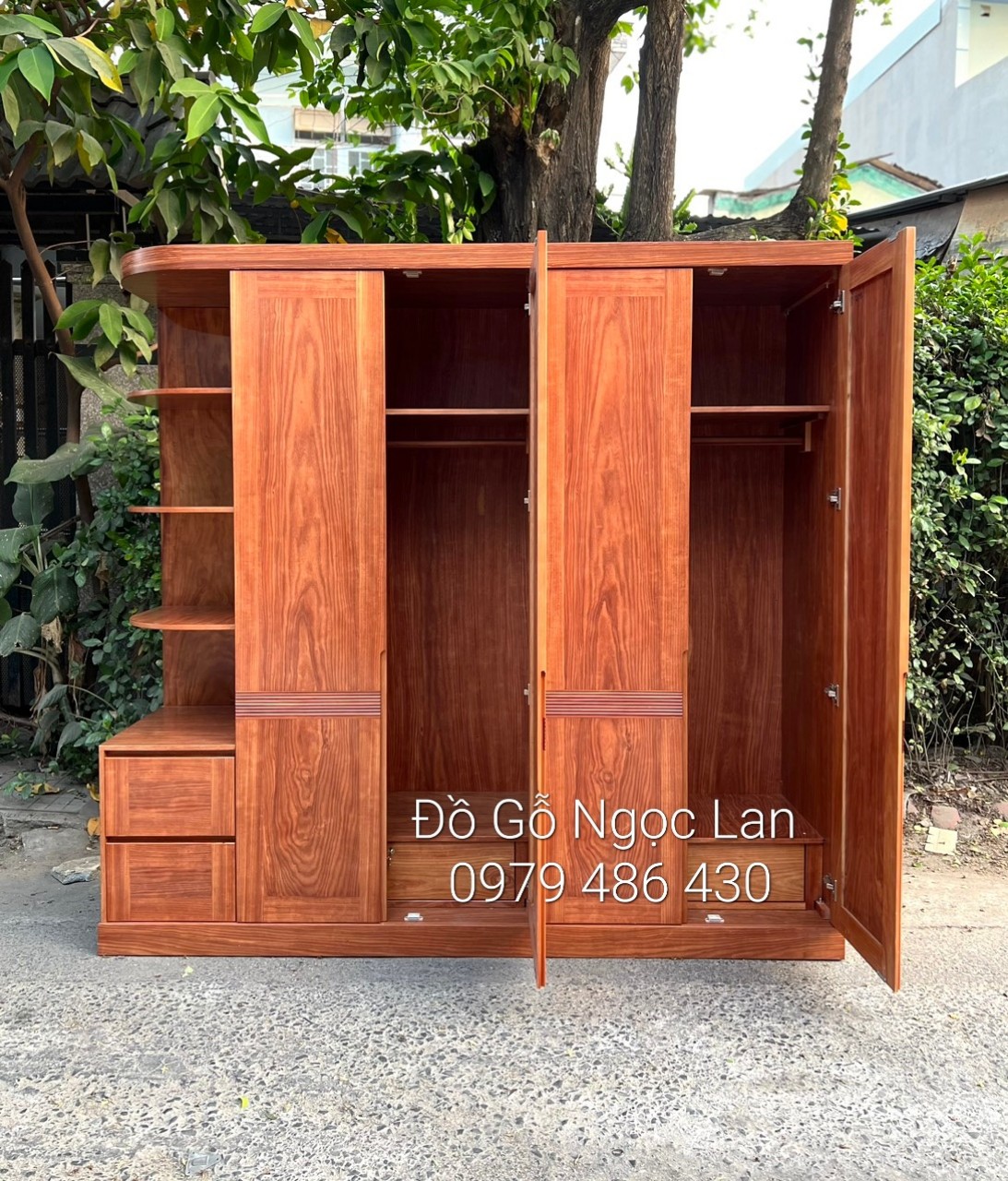 Tủ áo gỗ cẩm 4 cánh kèm góc trang trí - tủ quần áo gỗ tự nhiên tại Đồ Gỗ Ngọc Lan