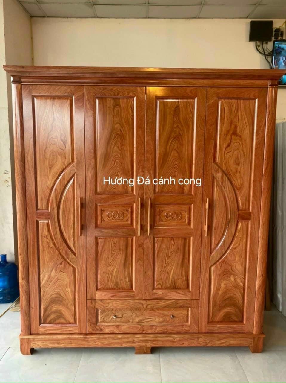Tủ quần áo 4 cánh gỗ Hương Đá - đai cong