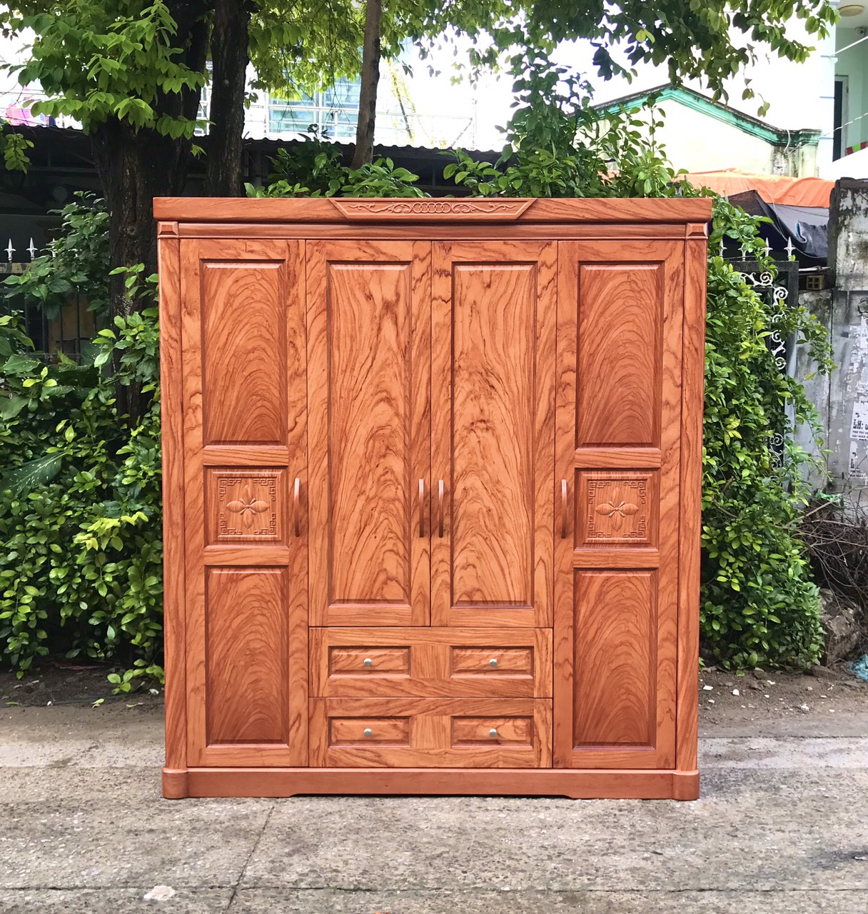 Tủ quần áo 4 cánh gỗ hương đá mẫu hoa thị T HD 15