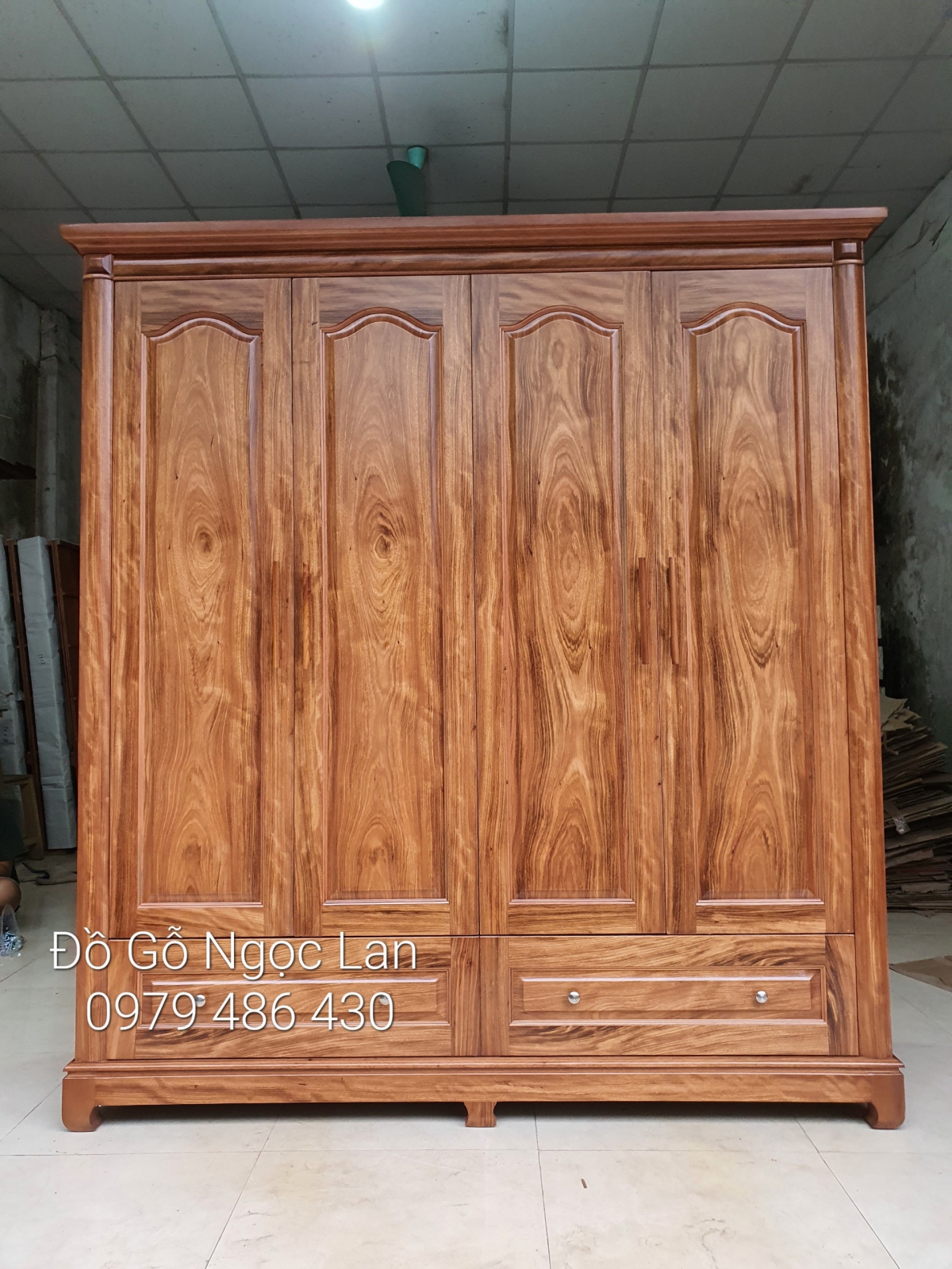 Tủ Quần Áo 4 cánh Gỗ Hương Xám Mẫu Đai Vòm T HX 018