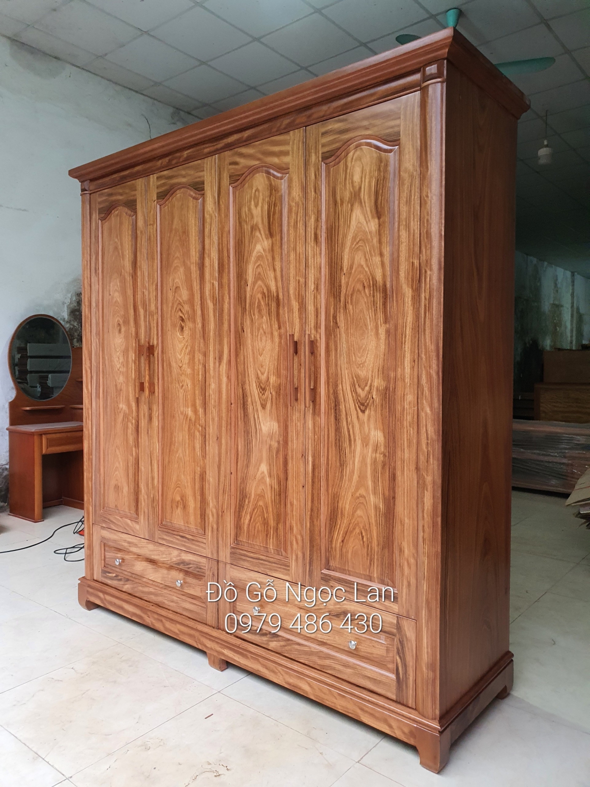 Chi tiết tủ quần áo 4 cánh gỗ hương xám